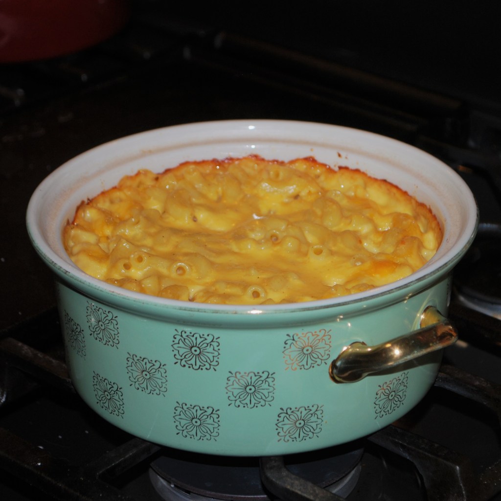 Combine sauce and pasta together in the cooking pot, folding gently to incorporate everything into a nice even mixture. This may seem overly cheesy, but please use all the cheese sauce. Remember that during the baking time, a lot of the sauce will be wiggling its way to the inside of your pasta shapes. More is better! Spoon into a buttered casserole dish and let cool slightly while you preheat the oven to 350° F. Cover and bake about 40 minutes then remove cover and bake 20 minutes more. Enjoy!