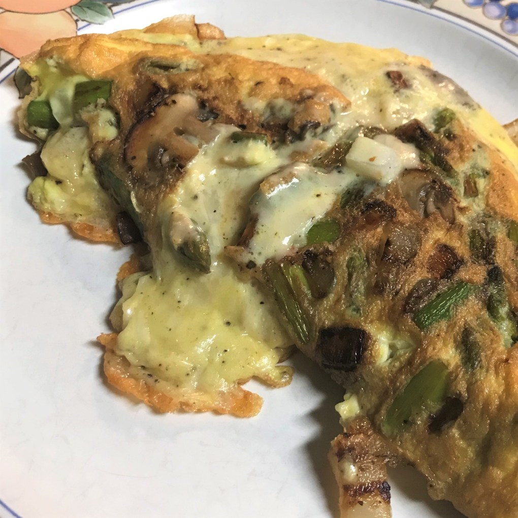 I like this style of omelet because it’s quick and simple, and it doesn’t require removing the extras from the pan and then stuffing them back in. Your “fillings” will be cooked into the outside of the omelet, with melty gooey cheese layered inside. This recipe is super flexible, too! You can add or substitute leftover vegetables of any kind if you don’t have spinach and mushrooms on hand—peppers, kale, broccoli, asparagus or whatever is taking up space in the fridge. If they’re already cooked, just chop into smallish pieces and toss them in the pan long enough to warm them and proceed with the recipe from there. As with most my recipes, I rely on formula and technique more than the ingredients. So, let’s talk about that: