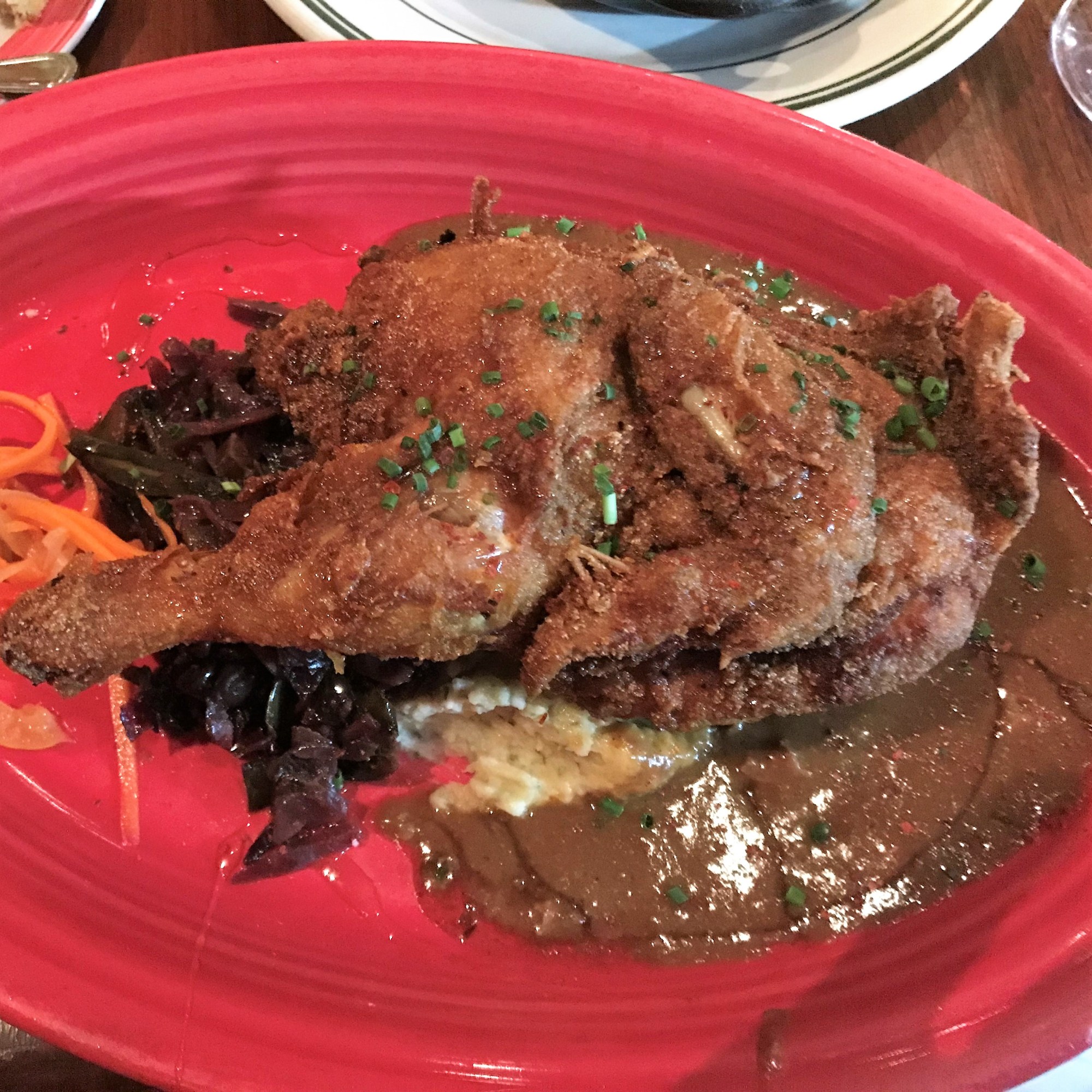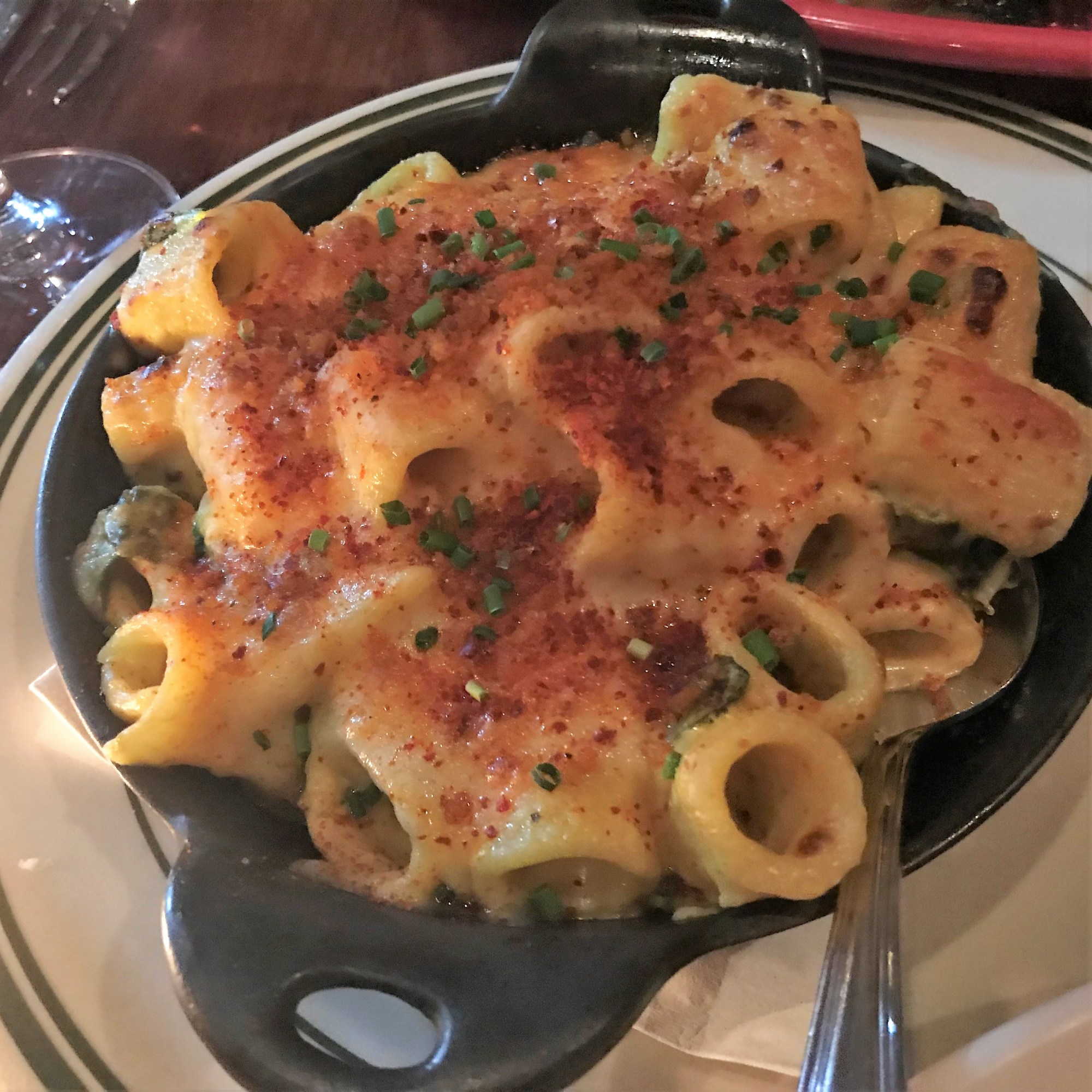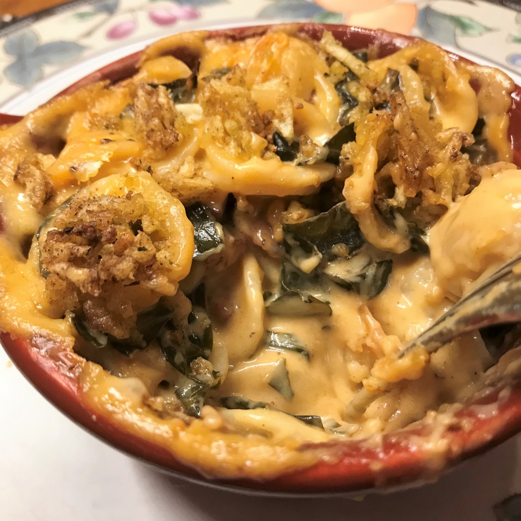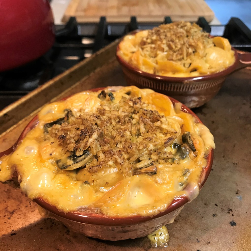 We were lucky to get a table at Red Rooster during the holiday season. All of New York was bustling, and the restaurant was lively and loud and fabulous. I ordered Poppa Eddie’s Shrimp & Grits, which was like a rich and flavorful gumbo served over creamy cheese grits. Les enjoyed the Hot Honey Yardbird. Yes, it was half a chicken, and yes, he finished the whole thing. But the restaurant staff told us, by far, the most popular menu item was the mac and greens, so we ordered it as a starter to our incredible meal. It was so crazy good, and I can’t explain why it has taken me until now to create my own version of it at home.