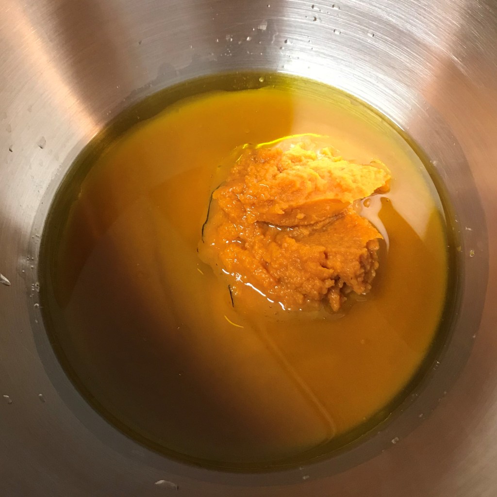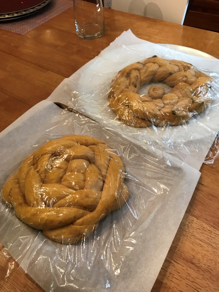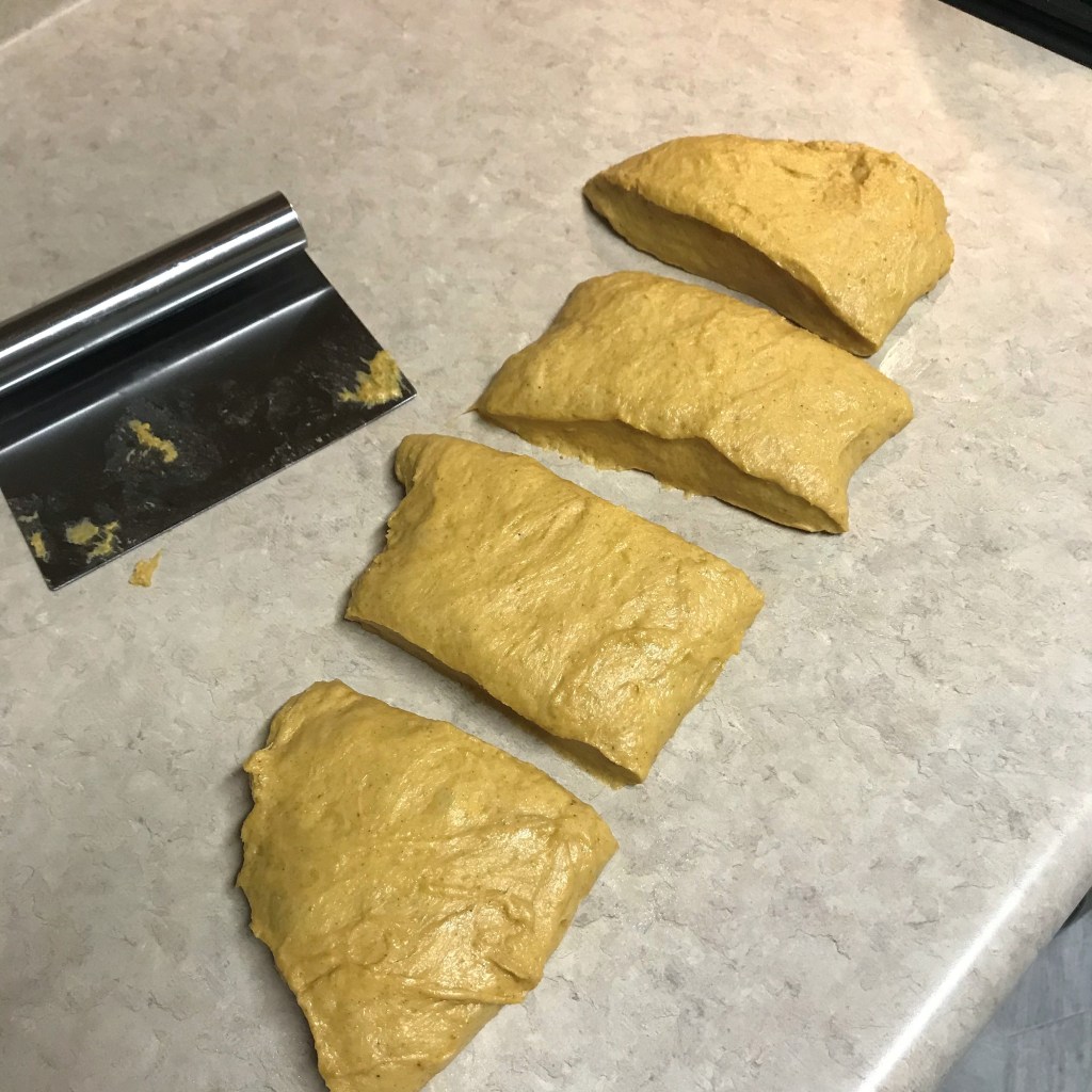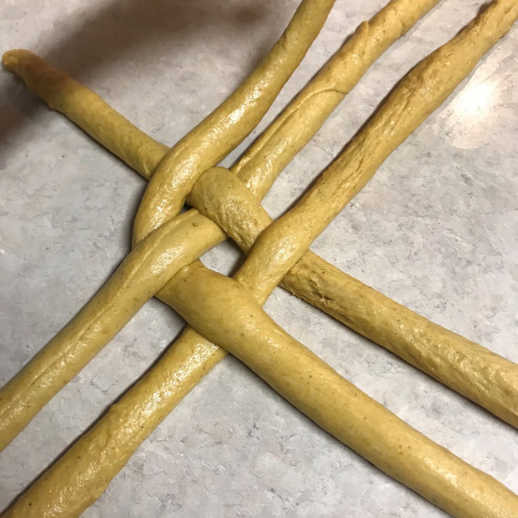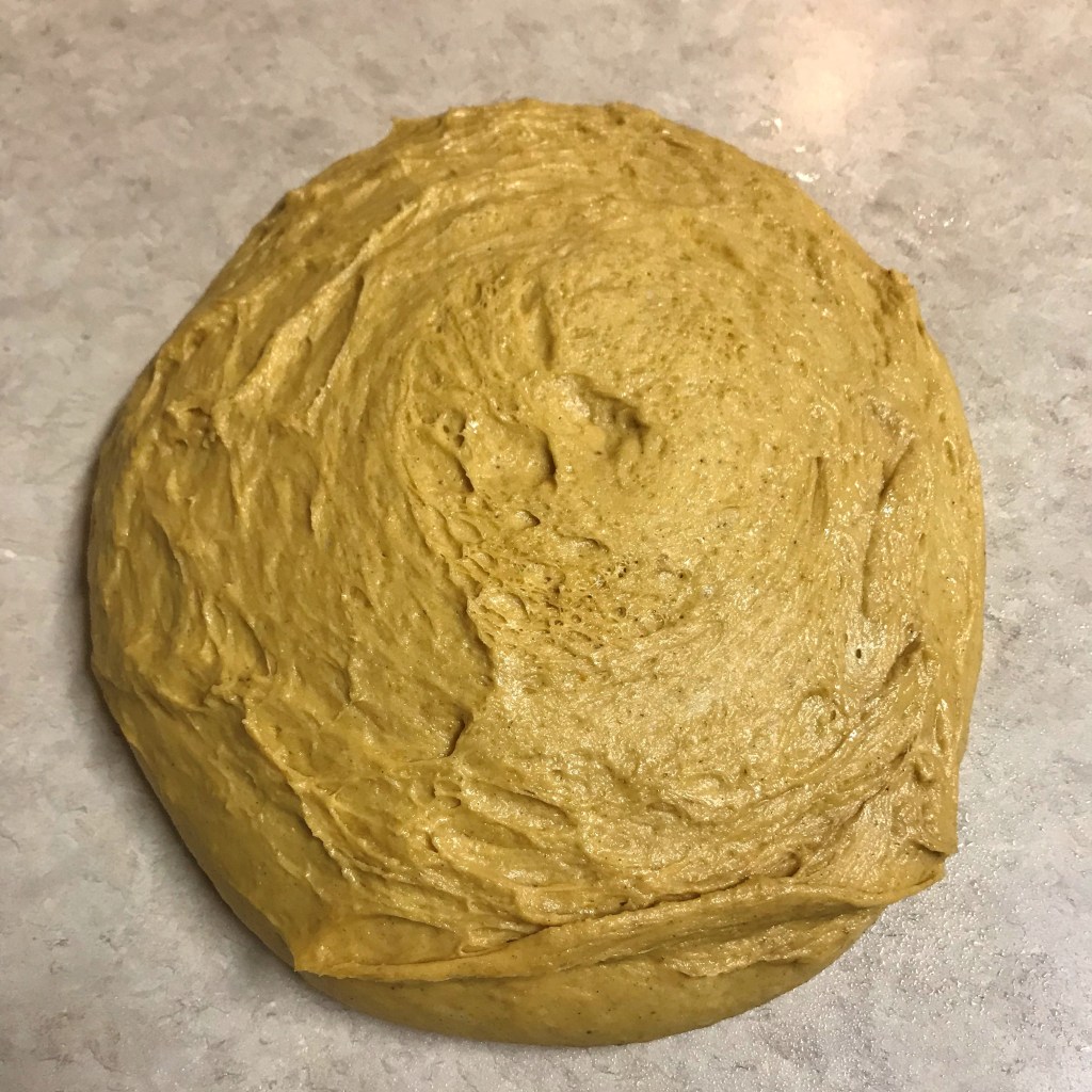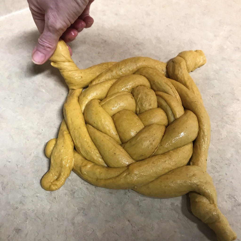 Introducing pumpkin to the mix is complicated for several reasons. First, I had to speculate how much moisture vs. bulk to account for in the pumpkin puree, because I had to create my own recipe and formula. Secondly, the fibrous nature of pumpkin puree contradicts the stretchy gluten structure of bread; the puree is wet, but it isn’t liquid. Challah is made with several eggs and oil—in its classic form, it should be light and soft inside, with a delicately chewy crust. With so much adjustment, coupled with long ferment times, I was sure that I’d fail in this venture. I hate to fail. But if failure is inevitable, I will go down in flames. Dramatic? Welcome to my mind.