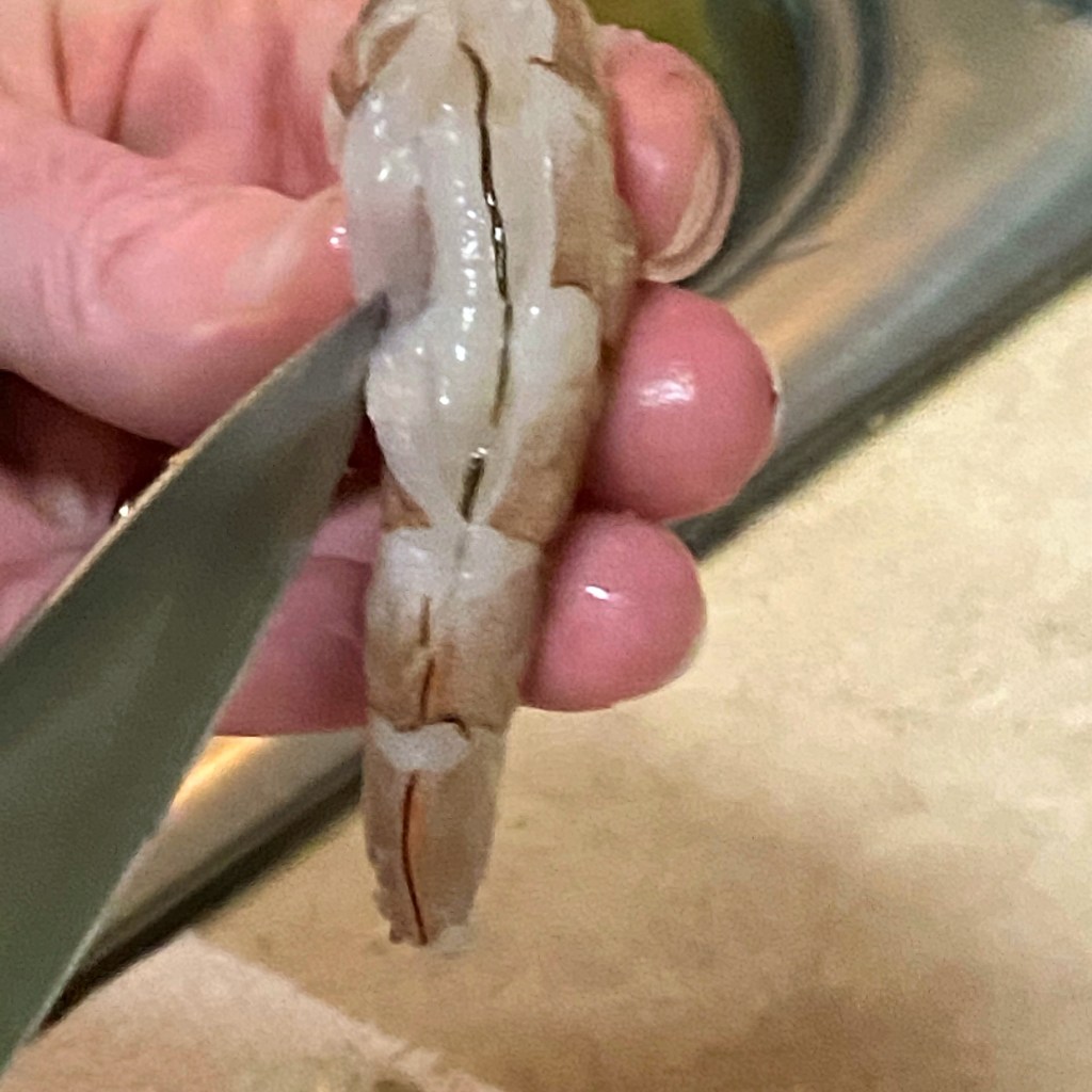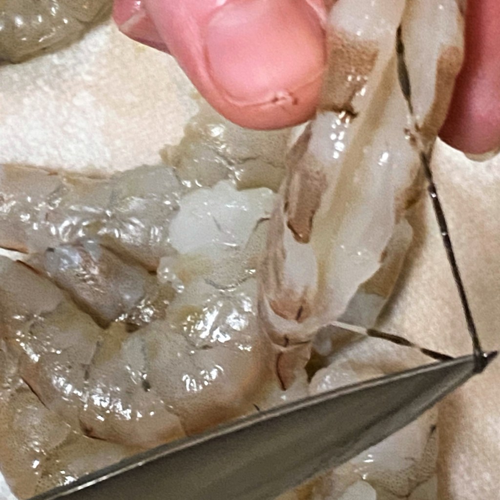 For goodness sake, do not skip this important step. As noted above, the “vein” in the outer curve of shrimp is actually a digestive tract, and the gunk inside is what’s left of the critter’s most recent meal (yuck). Food safety experts haven’t expressed serious concerns about eating it, but if it grosses you out (as it does me), grab a sharp paring knife and get that thing outta there!