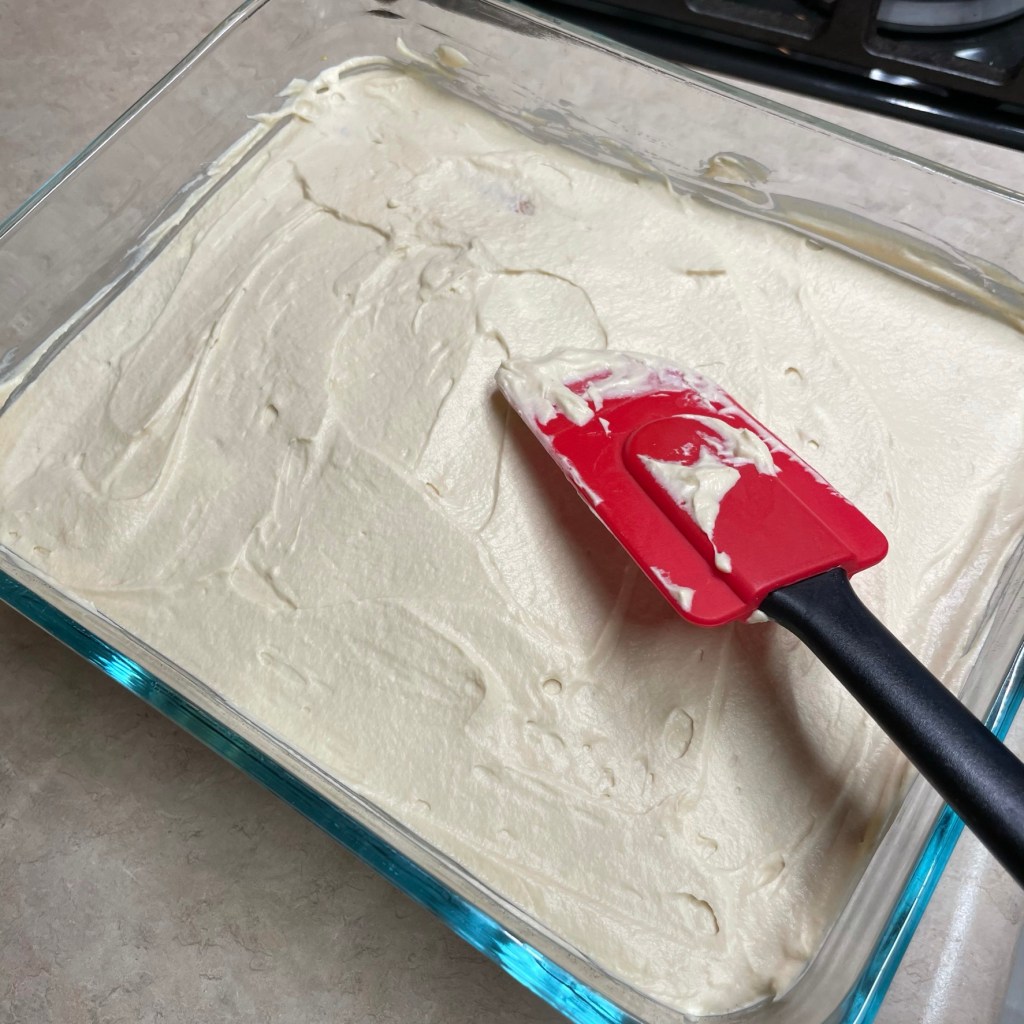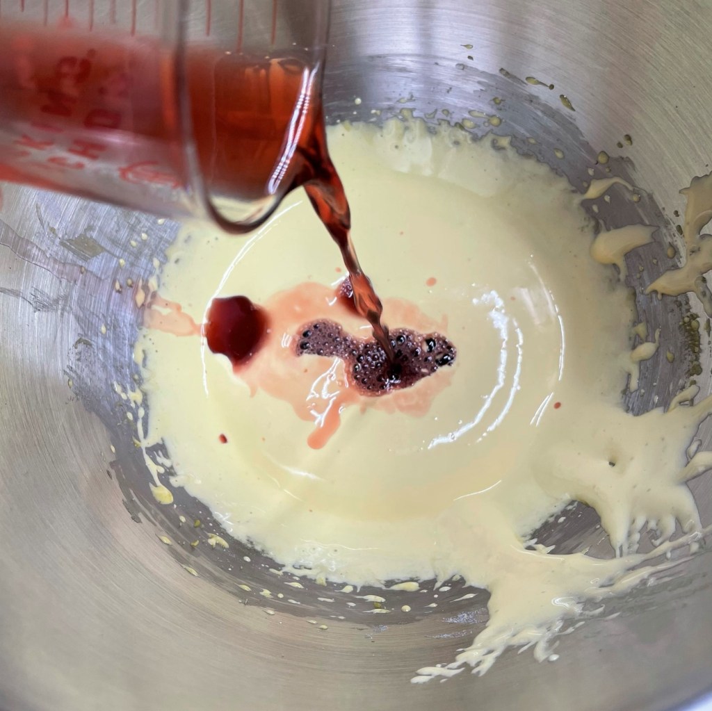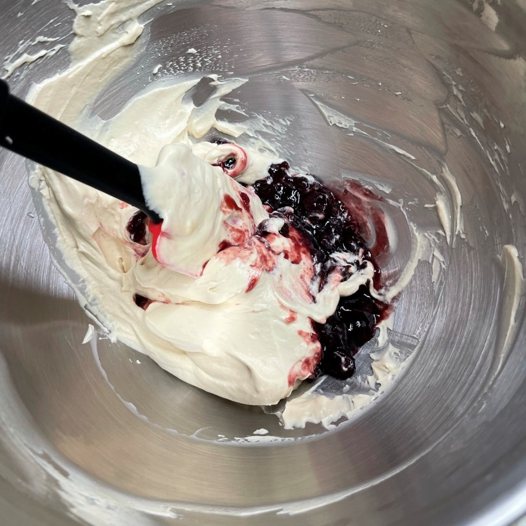 - Divide mixture into approximately half. Fold in cherry preserves to one half of mixture.