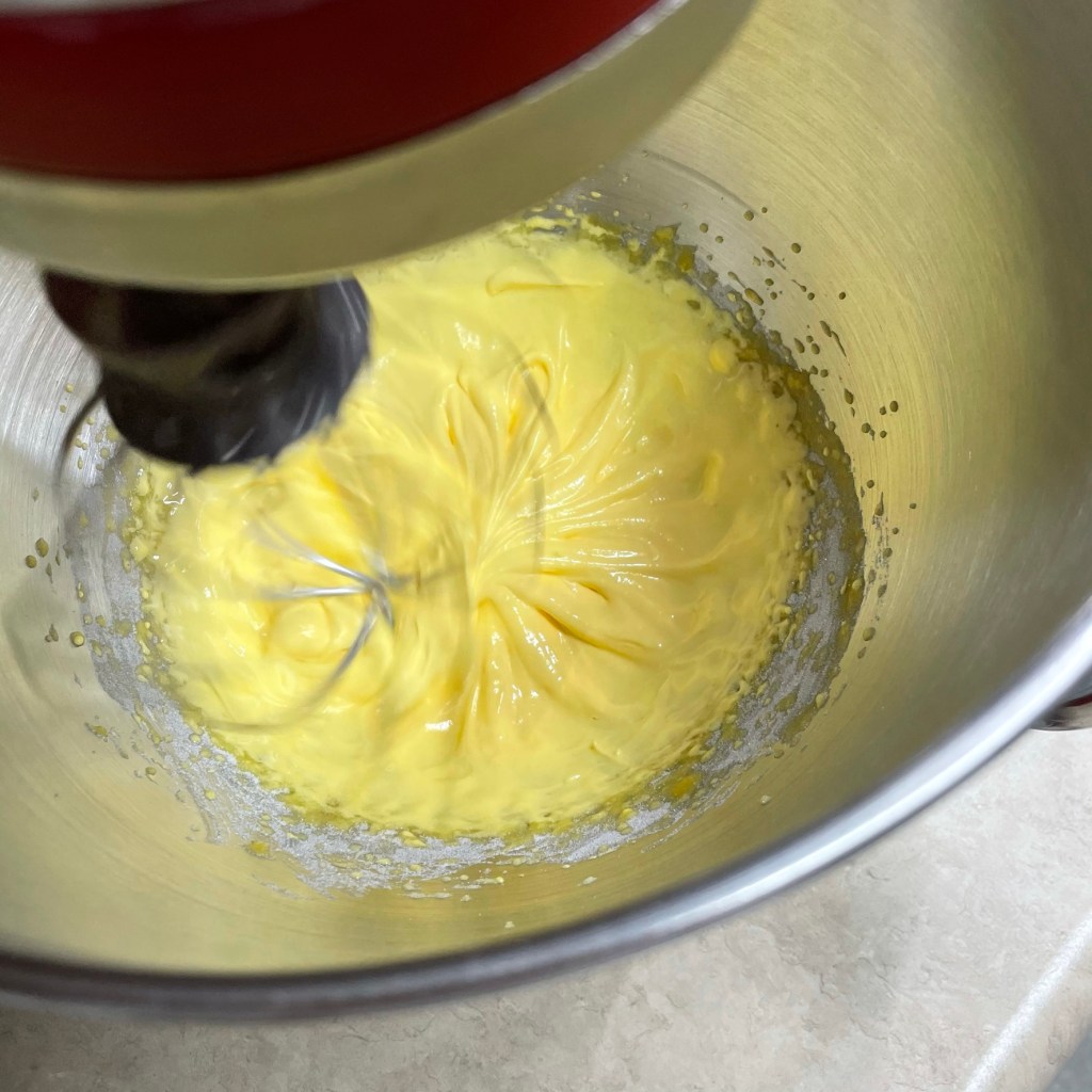 - Using the whisk attachment for stand mixer, whip egg yolks at high speed until smooth and slightly thickened. Gradually add caster sugar while eggs are being whisked and continue until sugar is dissolved and the mixture is light, fluffy and lemon-colored.