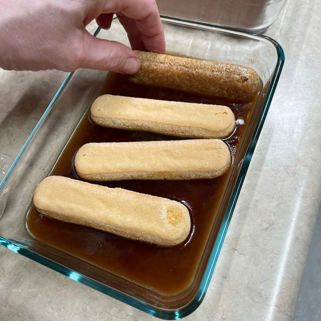 - Repeat with the remaining ladyfingers, topping the second layer with the remaining mascarpone mixture. Cover with plastic wrap and refrigerate for at least six hours, or preferably a full 24 hours ahead of serving.