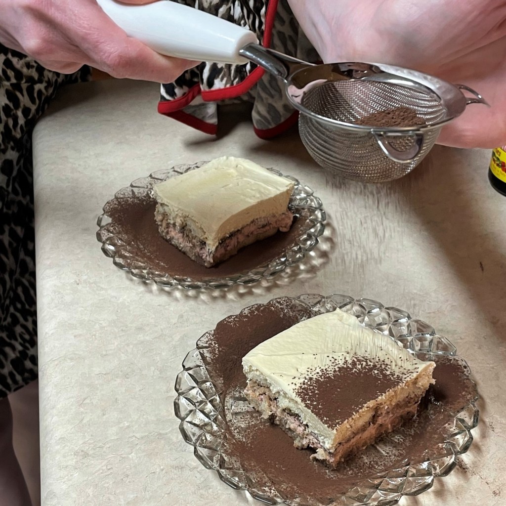 Double Dutch dark cocoa* for dusting between layers and top of tiramisu