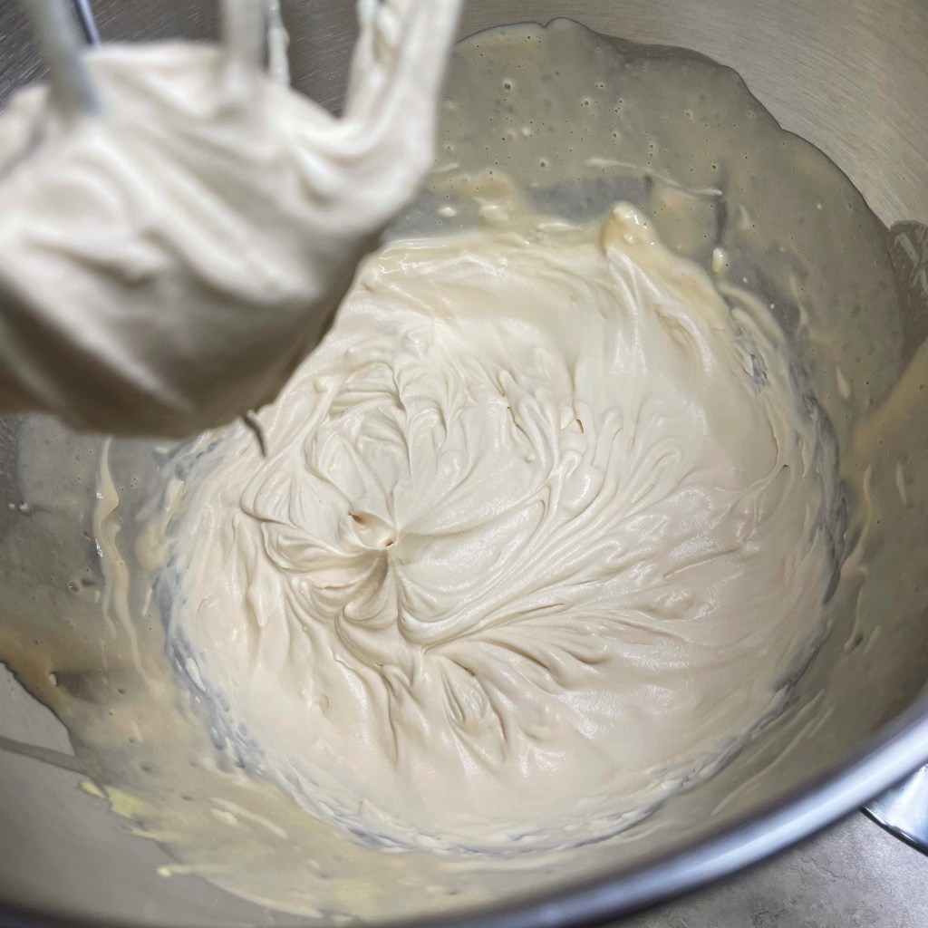 Brew extra cacao beverage (or espresso) than recommended in case you need it for dipping ladyfingers. The delicate cookies absorb the liquid very quickly, even when dipped for no more than five seconds, and it’s good to have a little extra on hand. This should be cooled to room temperature.