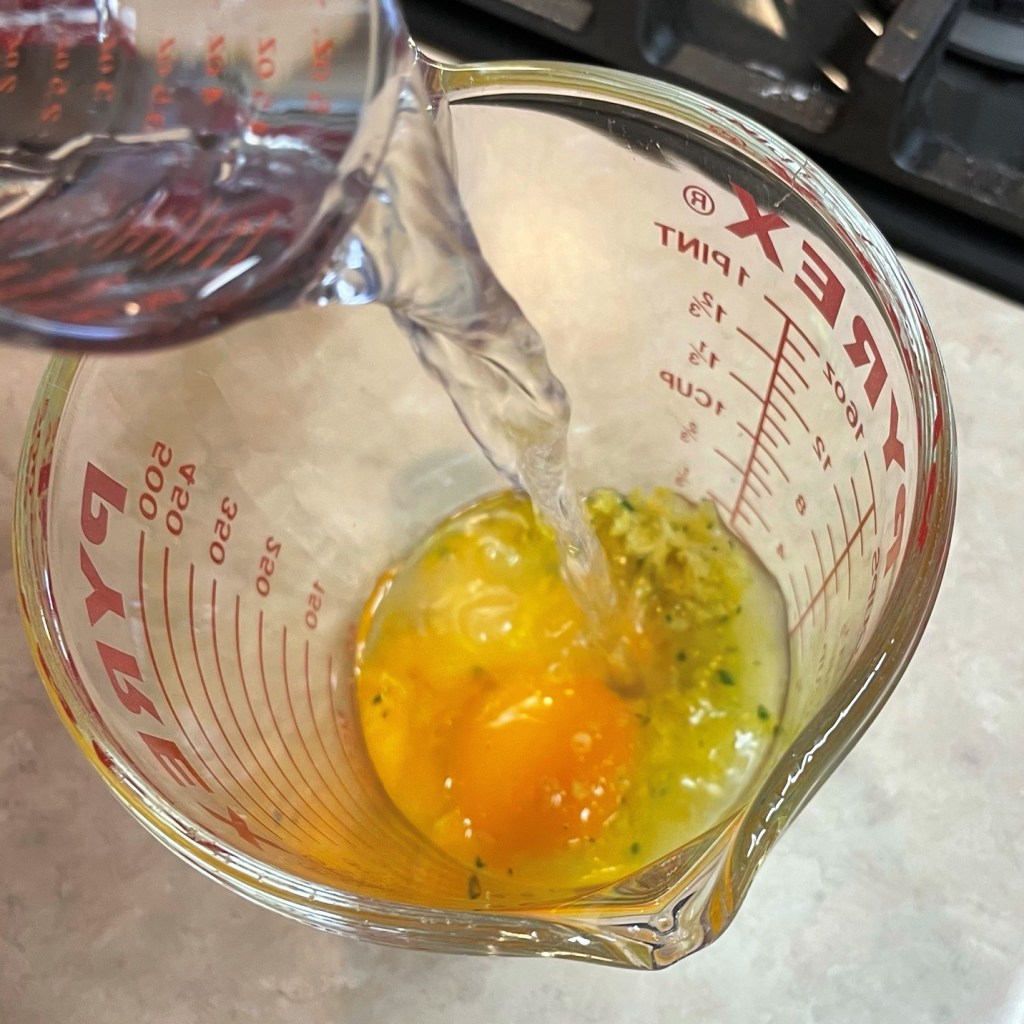 3. Combine egg yolks and water in a separate bowl and whisk them together until the mixture is light and frothy.