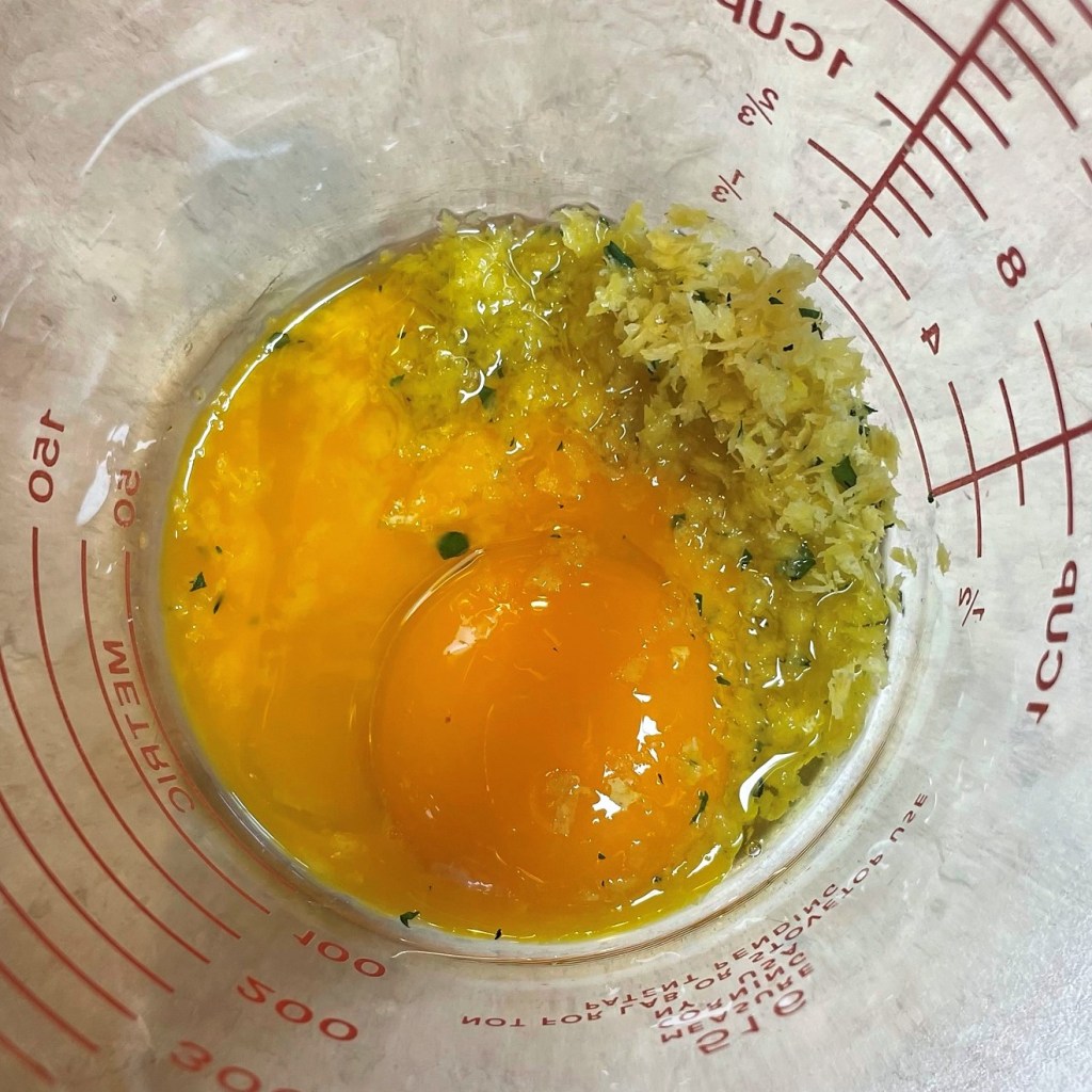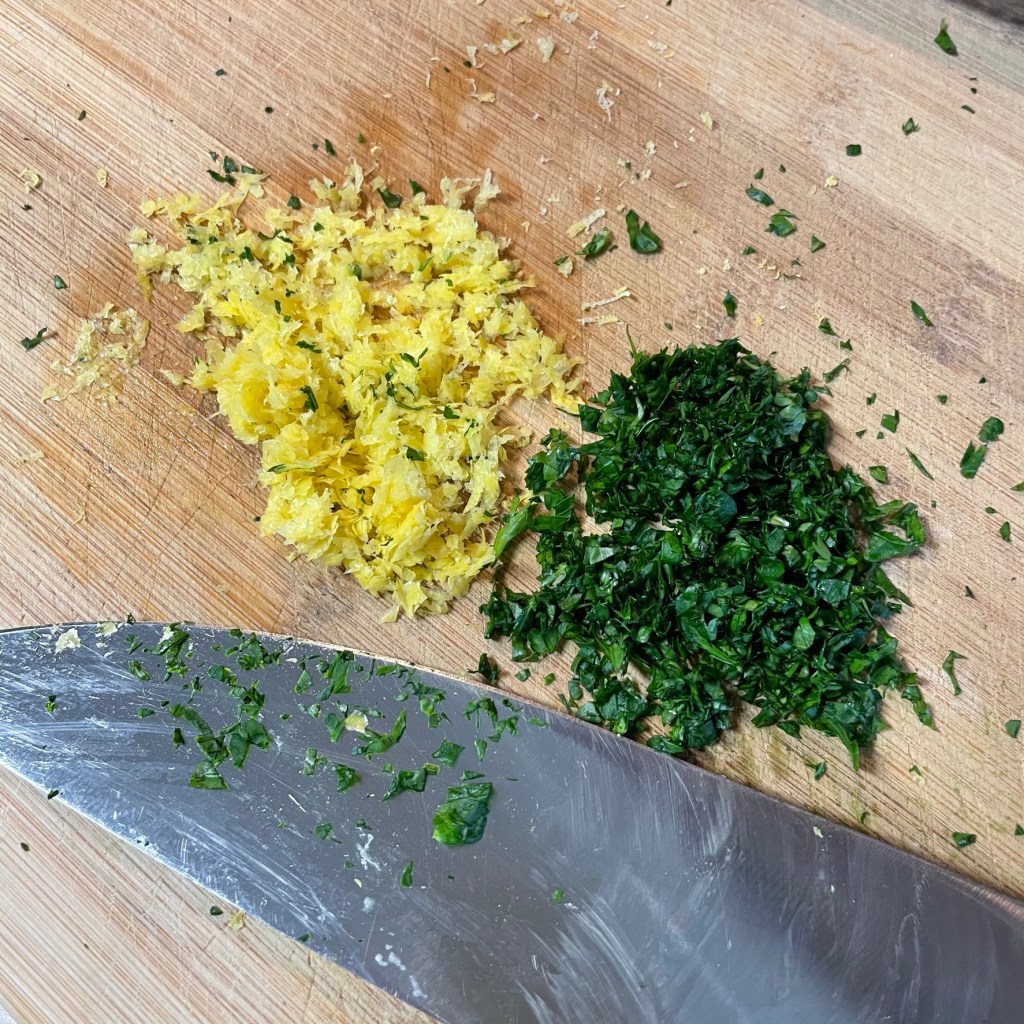 1. Zest the lemon and mince the herbs first, and spread them out on a cutting board so that the add-in ingredients dry out a bit.