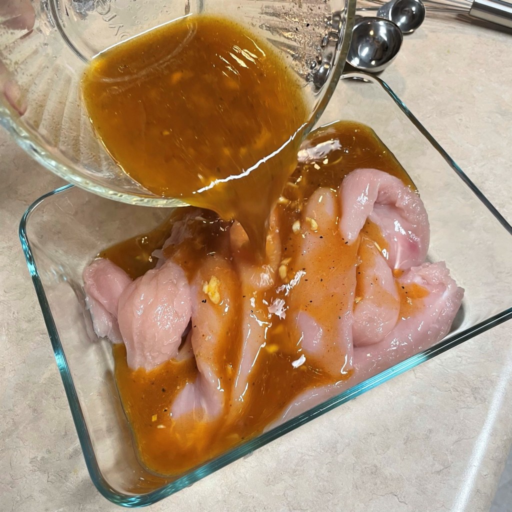 A little oil helps in a marinade, especially when using a very lean meat. My hubby runs the grill pretty hot and I wanted to help protect the chicken tenders from burning or getting dried out. Olive oil is my go-to, but avocado or canola oil would work just as well.