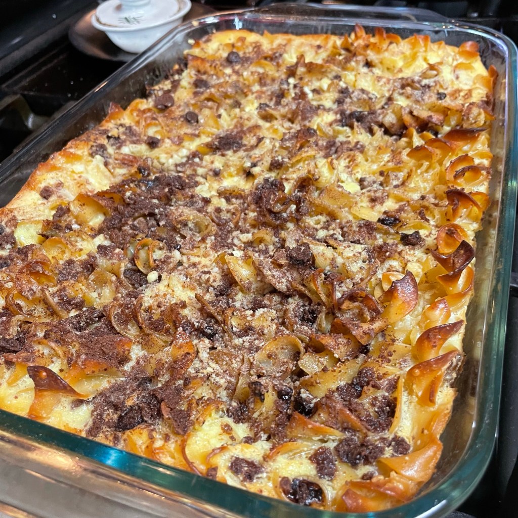 Judge’s note: This kugel reminds me of a bread pudding, but with egg noodles rather than bread cubes. It is so delicious, I want to eat it again for breakfast!