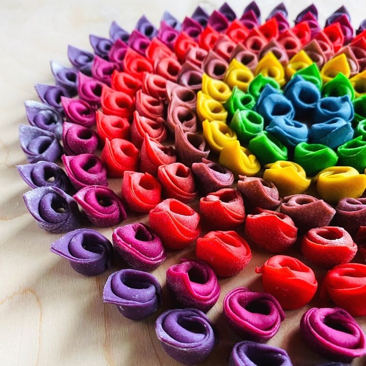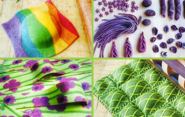 And in preparation for that time, I have been getting in some practice rounds with handmade pasta, due in part to my purchase of this amazing how-to book. The author of Pasta, Pretty Please, Linda Miller Nicholson, describes her recipes for brilliantly hued handmade pasta dough, flavored and colored with pure, natural ingredients, and then shaped with the most clever and creative techniques. Linda is all over Facebook, YouTube and Instragram with her craft, and you can count me among those who are utterly enthralled by her incredible, edible art. Feast your eyes!