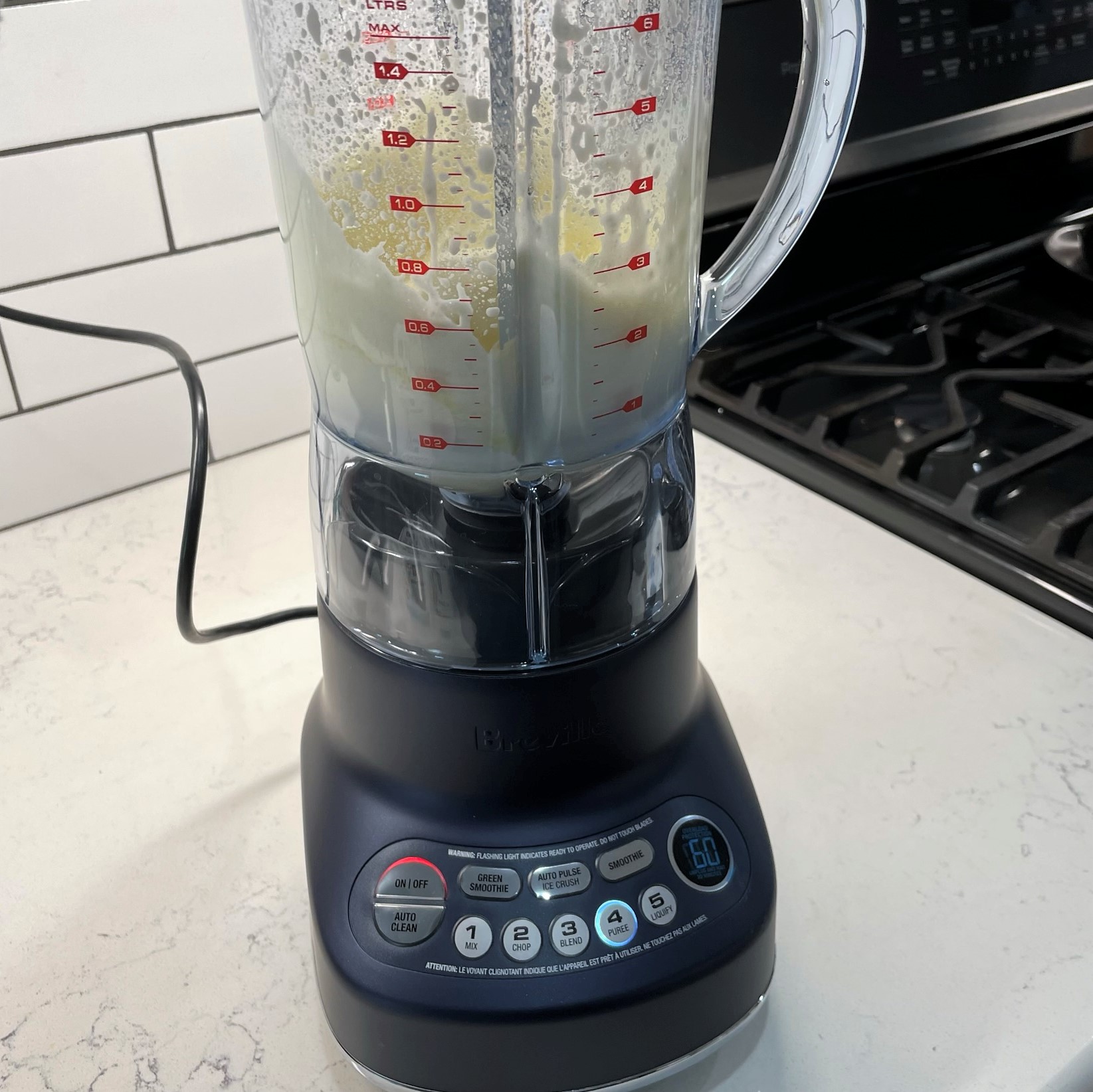 I’ve had a Nutri-Bullet personal blender for a few years, and it’s great for breakfast smoothies and small amounts of things that I want to puree into oblivion, but not so good for anything that requires finesse, because the Nutri-Bullet has only one setting. It is also inconvenient for making anything that requires adding or adjusting ingredients halfway through, because once you open the wide, jar-like lid, the blended mixture gets all over everything and makes a mess. I needed a blender that opened at the top and had multiple settings and functions to help me with more than just smoothies.
