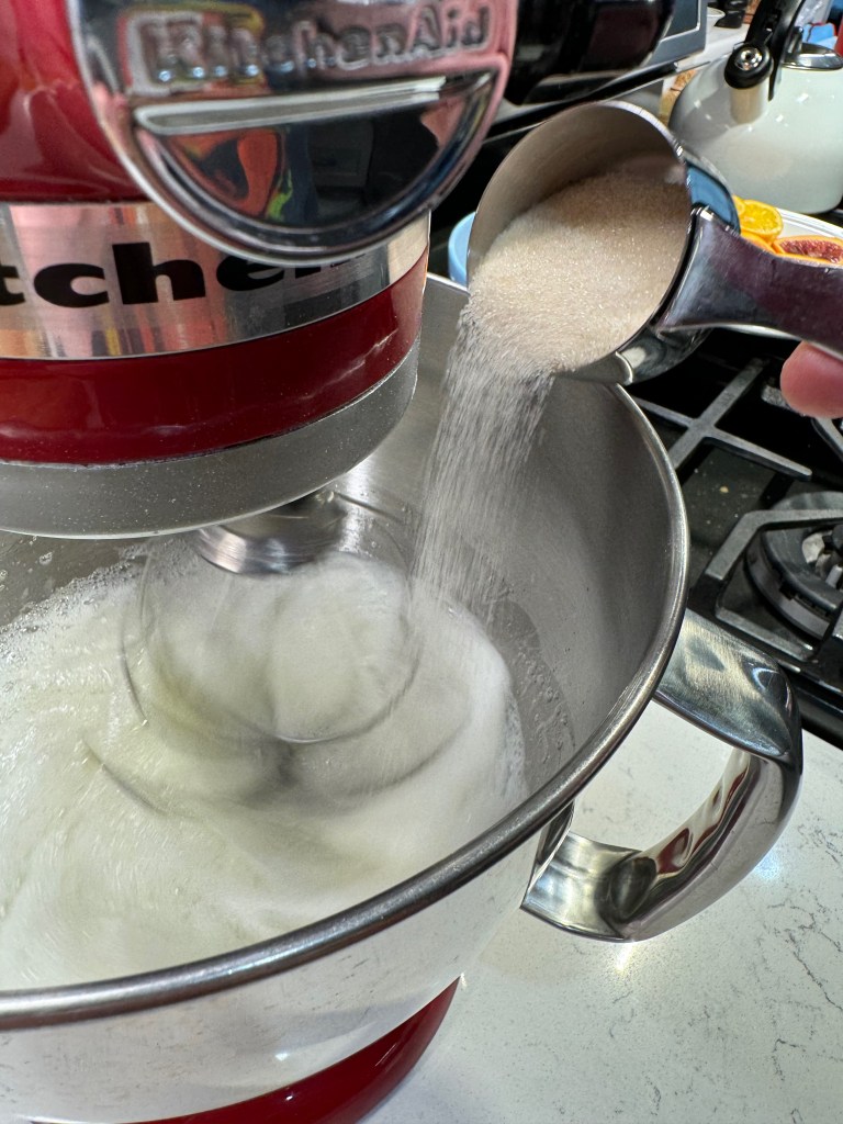 - In a stand mixer, with blade attachment, beat egg yolks and 1/4 cup sugar until evenly combined and somewhat fluffy.