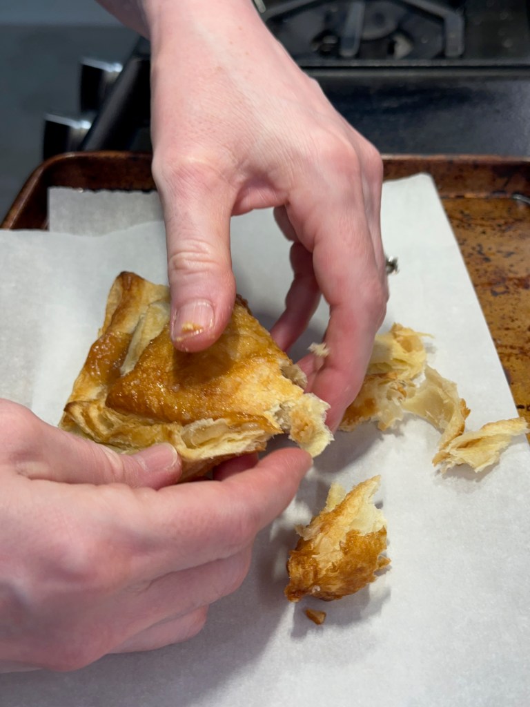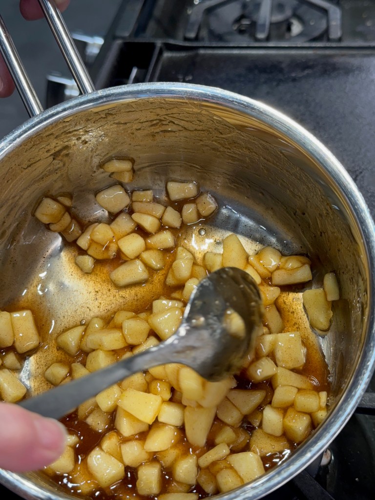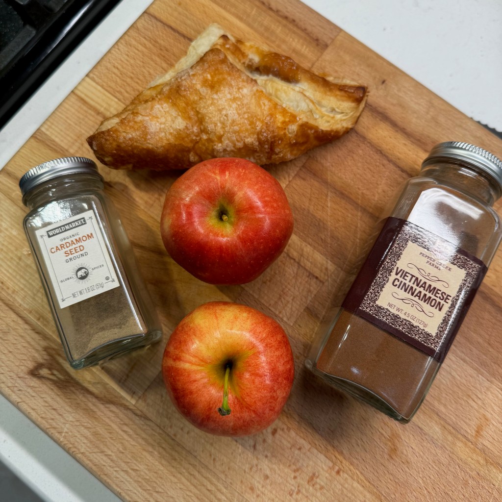 The “pie” part of my recipe comes not from pie crust, but from buttery, flaky apple turnovers. I took a shortcut by using store-bought pastries, but it was a relief to not turn on the oven. If you make the turnovers yourself, you are officially the apple of my eye! 🤩