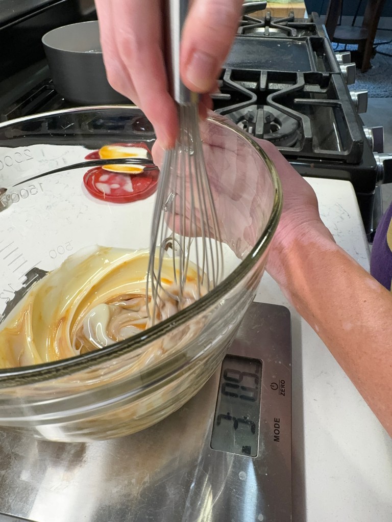 The ice cream base I used is my go-to, with sweetened condensed milk, cream, whole milk and a touch more cinnamon. This time, though, I got a notion to swap in a portion of dulce de leche sweetened condensed milk. It’s a thicker, caramelized version of condensed milk, and its rich, caramel-y flavor gave my ice cream even more of an apple pie vibe. Notice that I did not include vanilla? I wanted no distraction from the apples, caramel and spices.