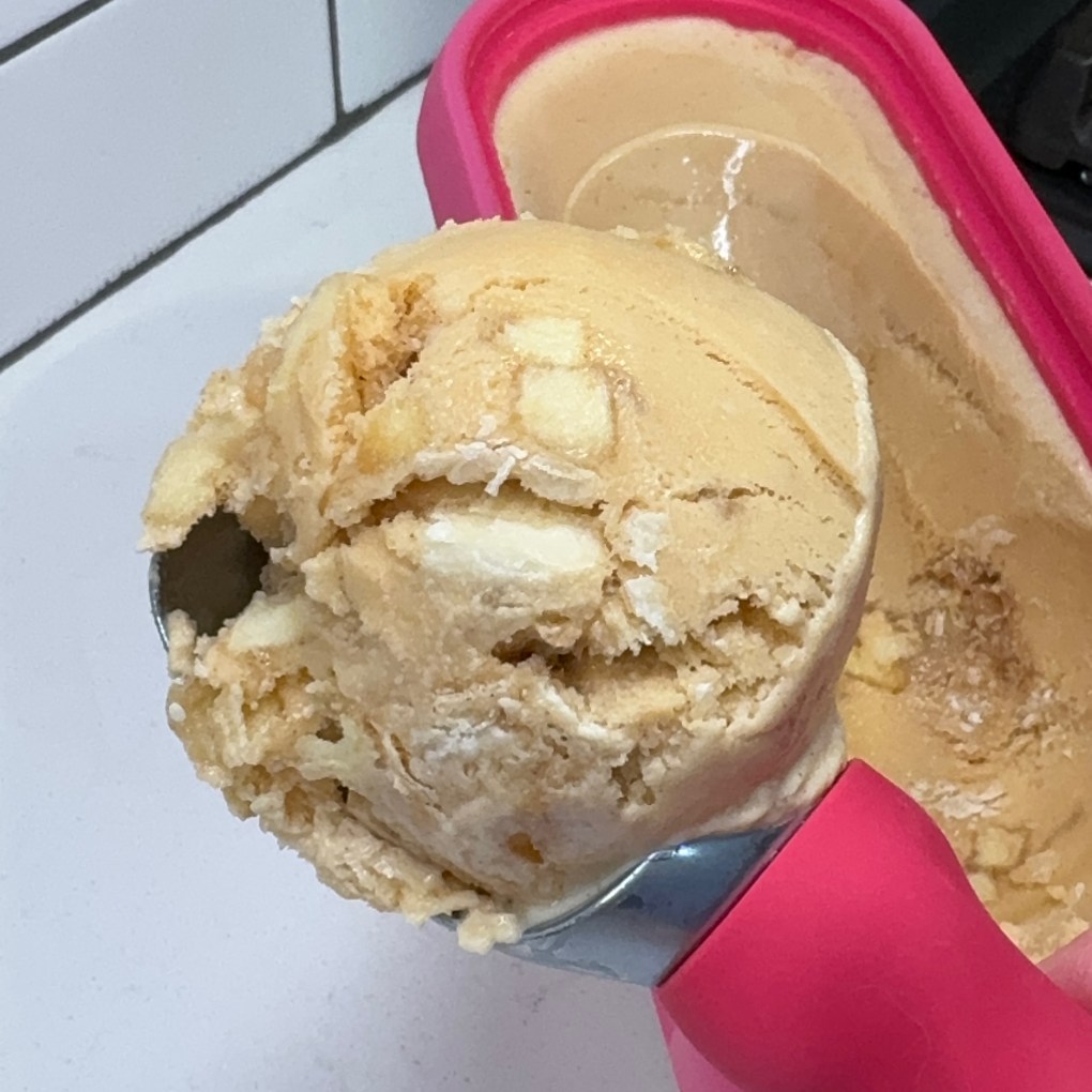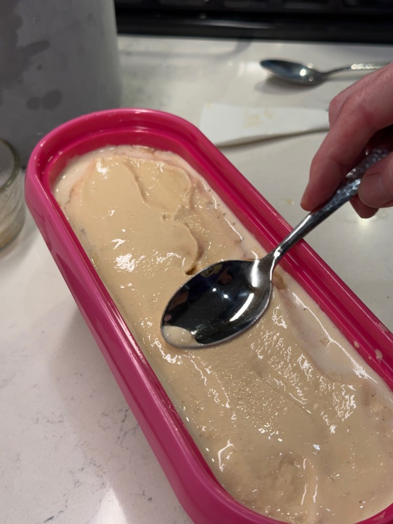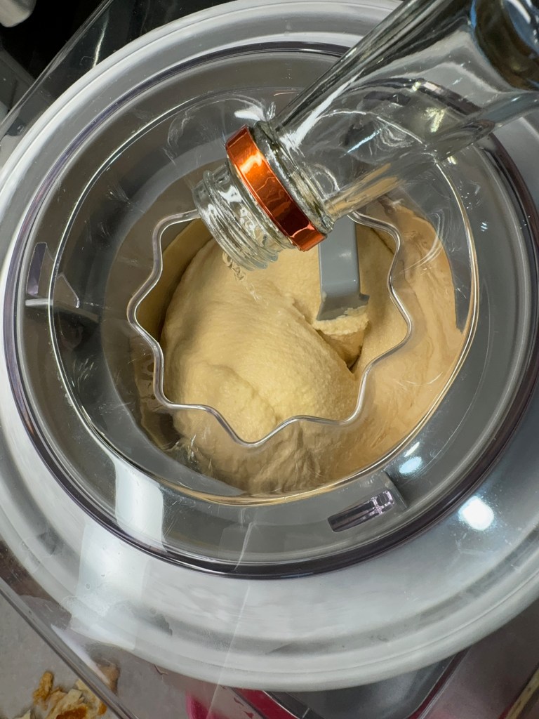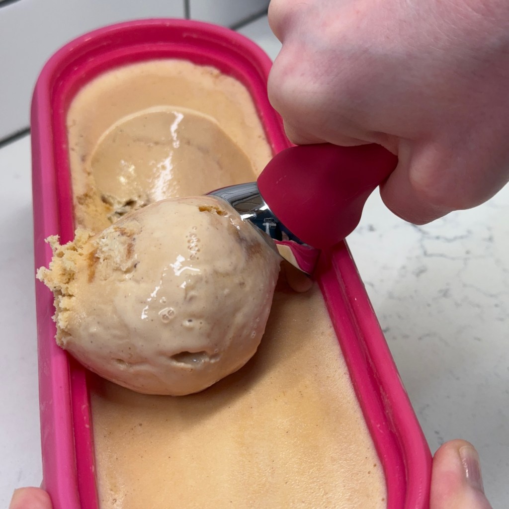 4. Churn the dairy base in ice cream machine, following manufacturer’s instructions. If using vodka for texture, only add it during the final minute of churning. Transfer ice cream to an insulated freezer container, layering with stewed spiced apples and torn bits of frozen turnover. Ripen in freezer several hours (overnight is best).