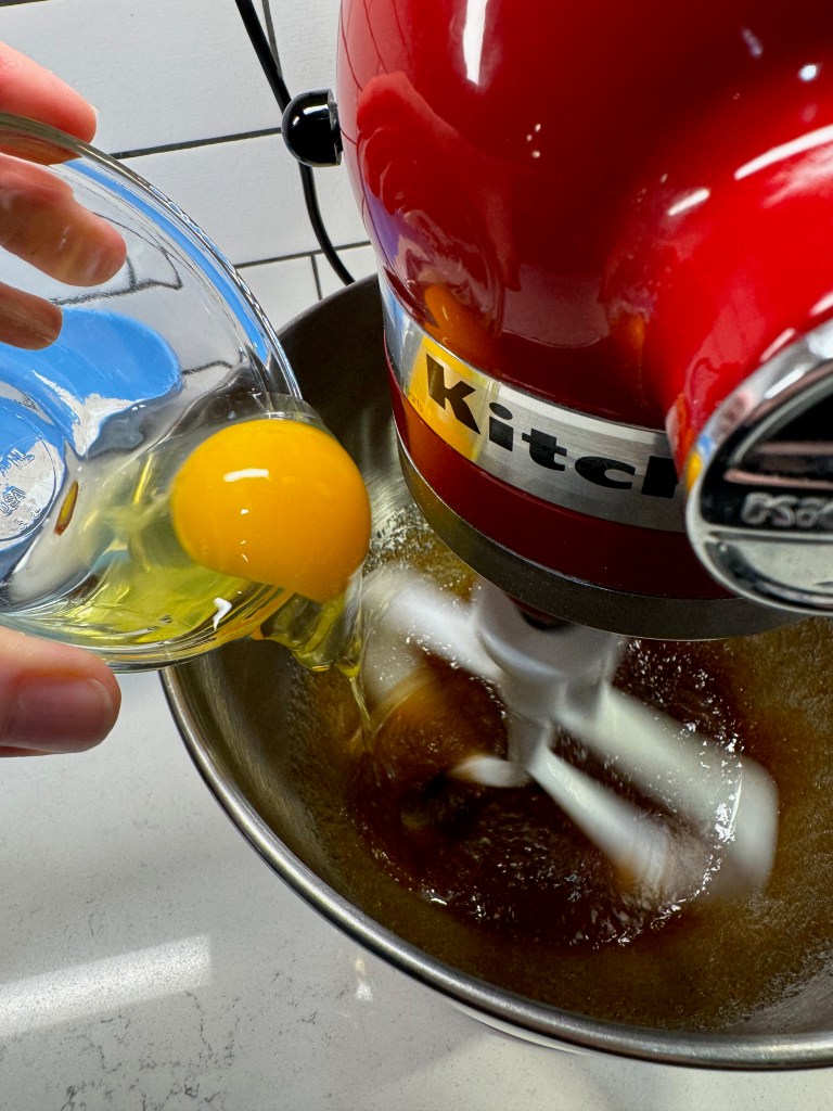 - In a large mixing bowl (or the bowl of a stand mixer fitted with paddle), stir together browned butter and brown sugar until evenly blended. Add apple butter and egg. Beat until combined and somewhat fluffy.