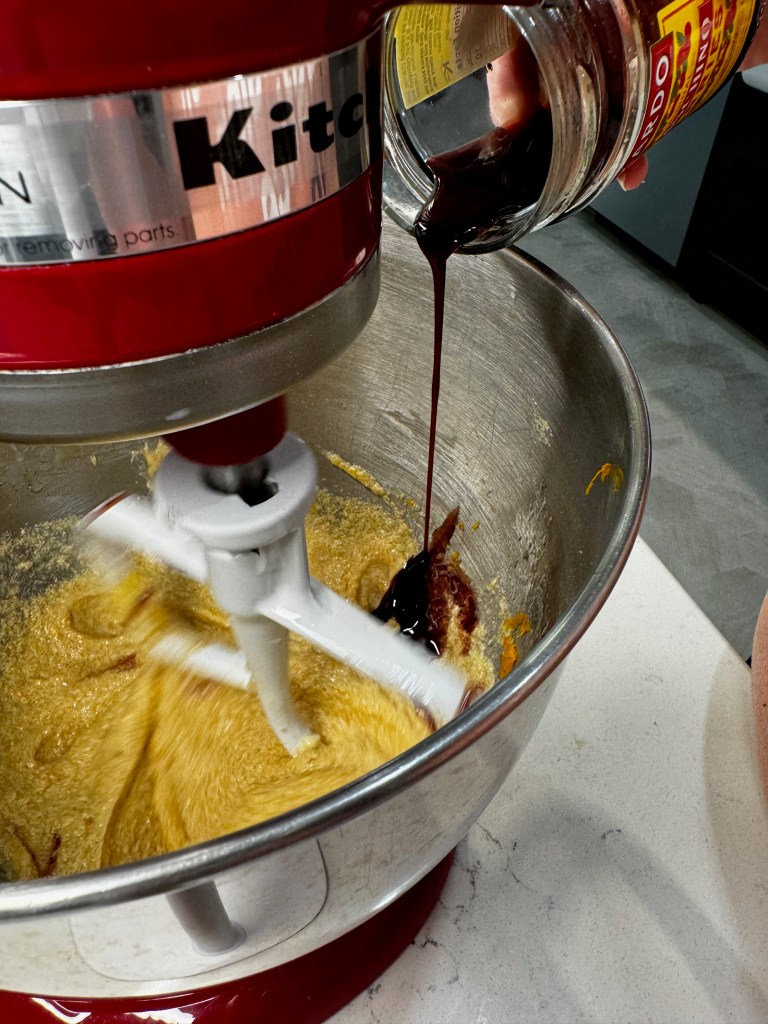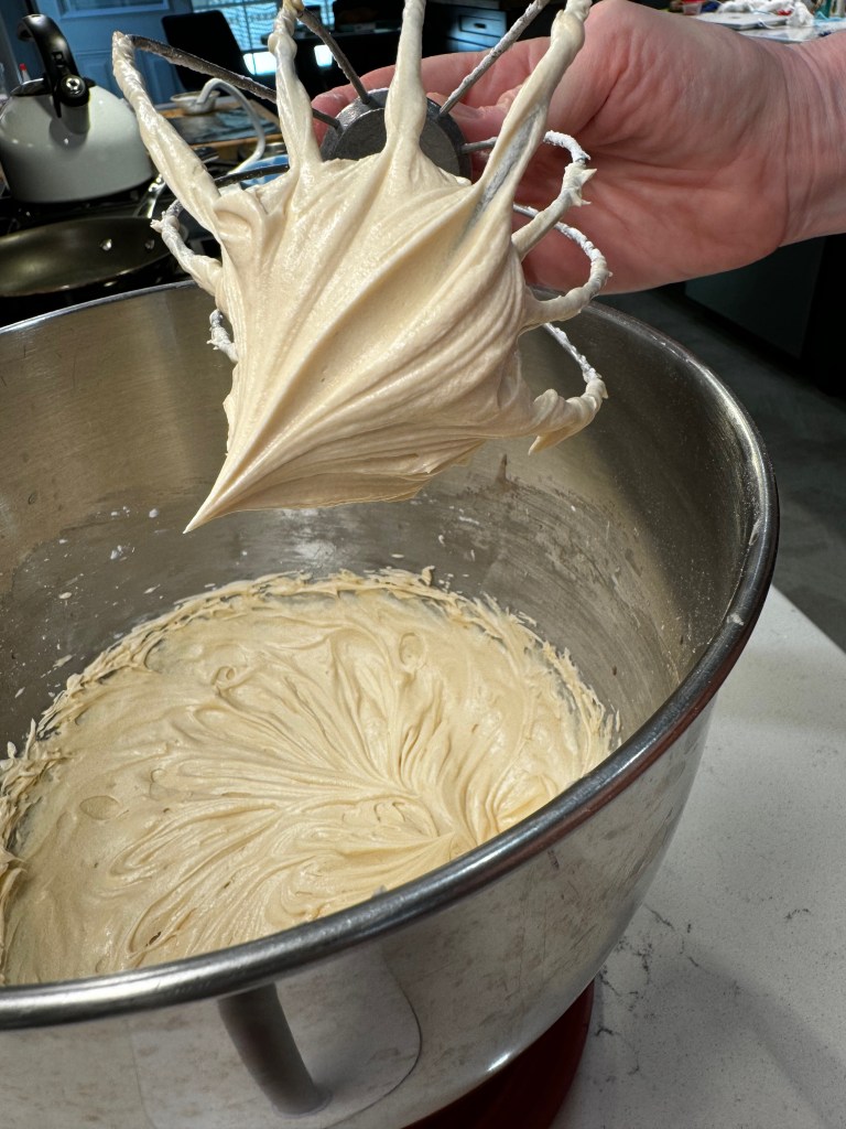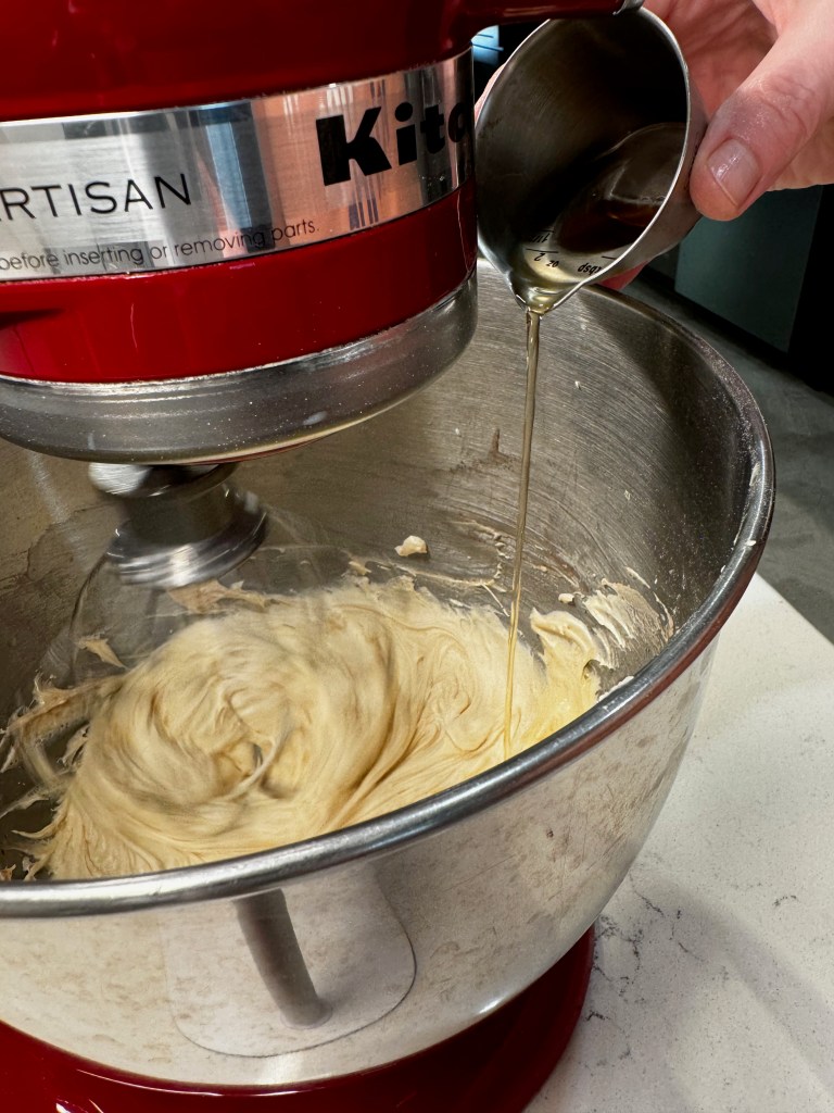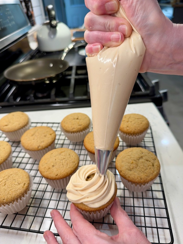 I don’t necessarily agree, but Gentleman Jack is very easy on the palate, and lower proof (80) than most of the bourbons we usually drink, which makes it lovely with the sweetness of dessert. Boozy, but no harsh bite. Now, let’s talk about the caramel notes in this buttercream!