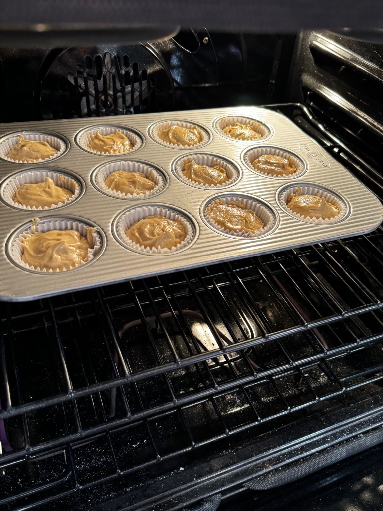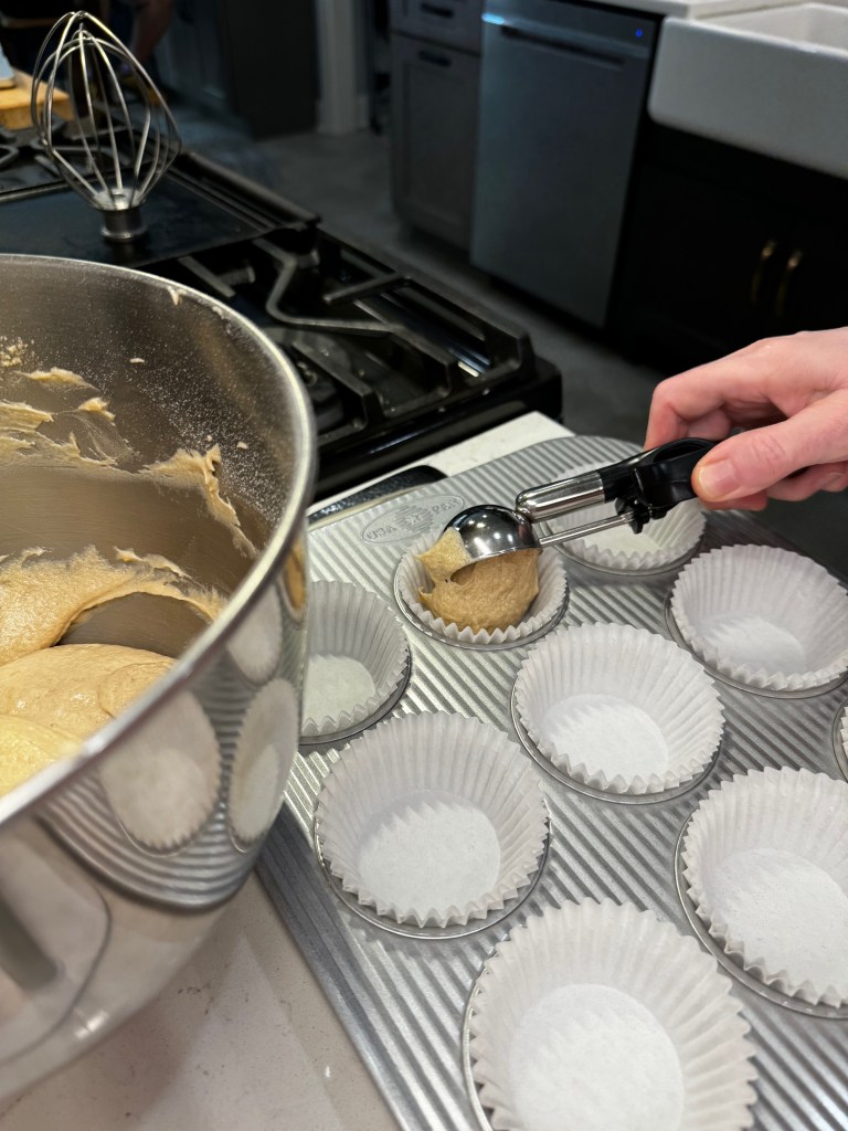 - Preheat oven to 350° F, with oven rack in center position. Line 12-muffin tin with double cupcake papers.