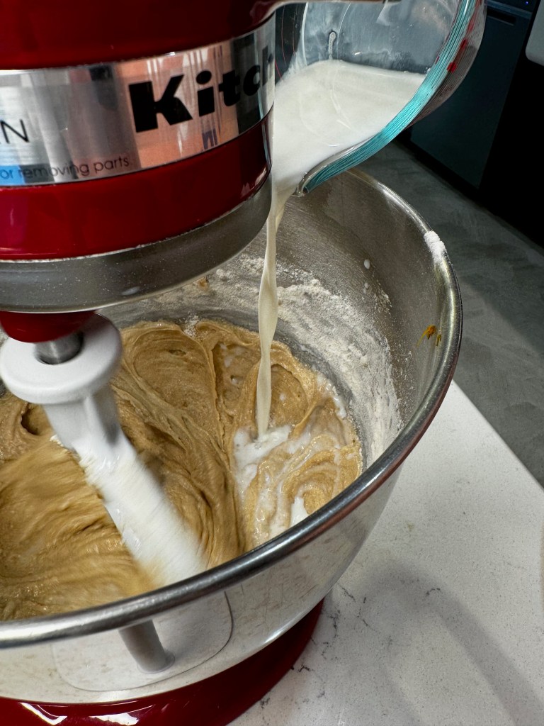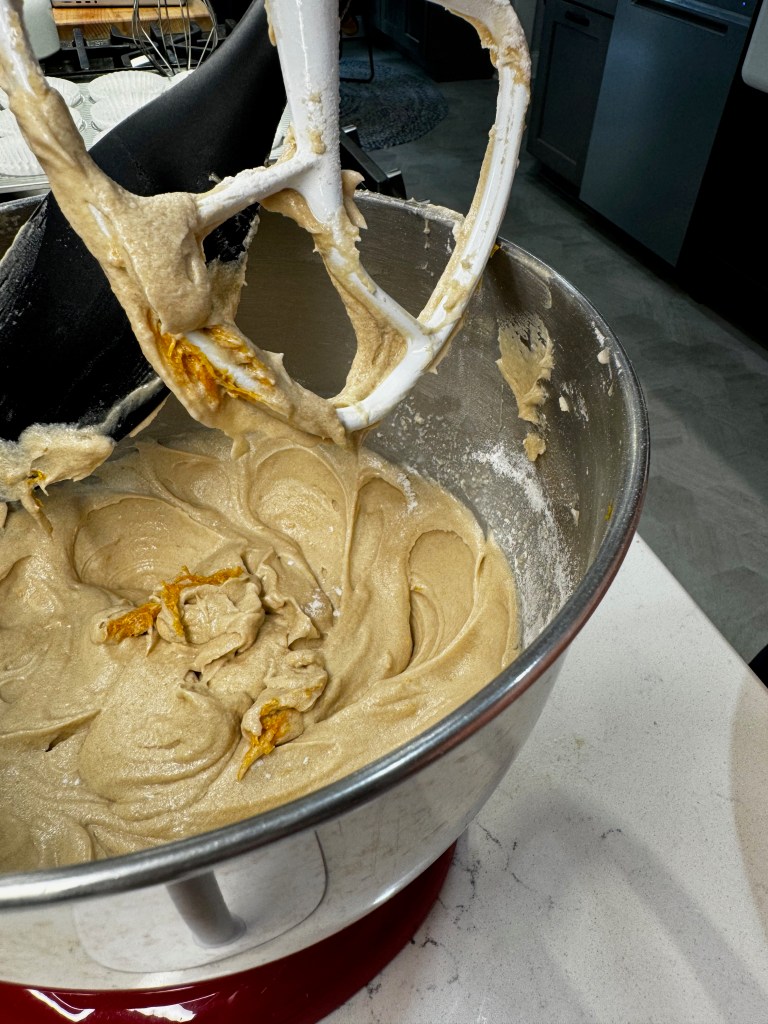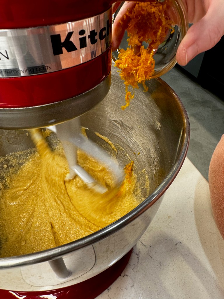 - Add 1/3 of the flour mixture and beat on low just until incorporated. Beat in half of the milk, then repeat with half of remaining flour, more milk, last of flour. Stop mixer and scrape down bowl, folding in the orange zest at the end.