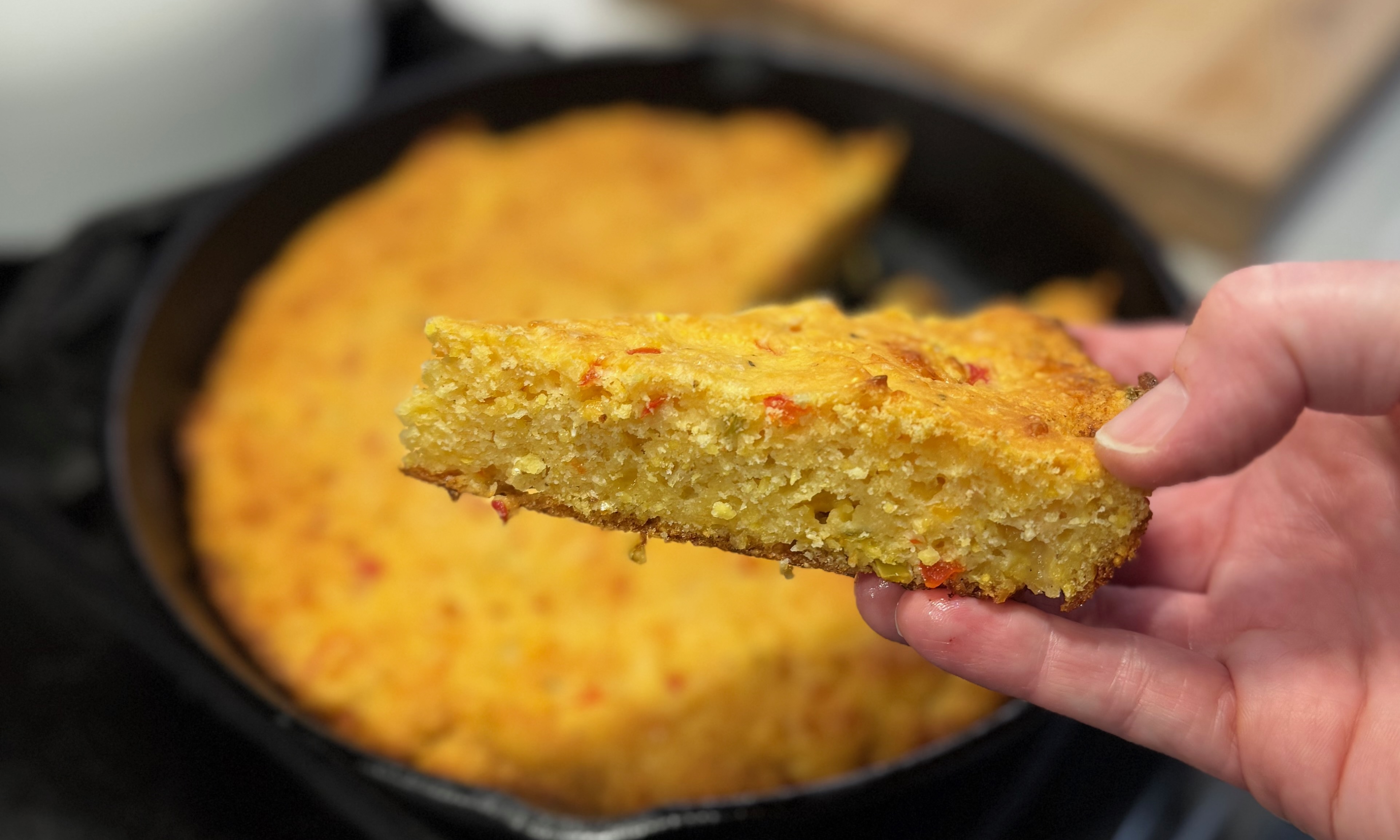 Sharp cheddar and diced pimentos have transformed a classic cornbread into something utterly addictive. If you're adventurous, swap in a few hot cherry peppers for even more great flavor.