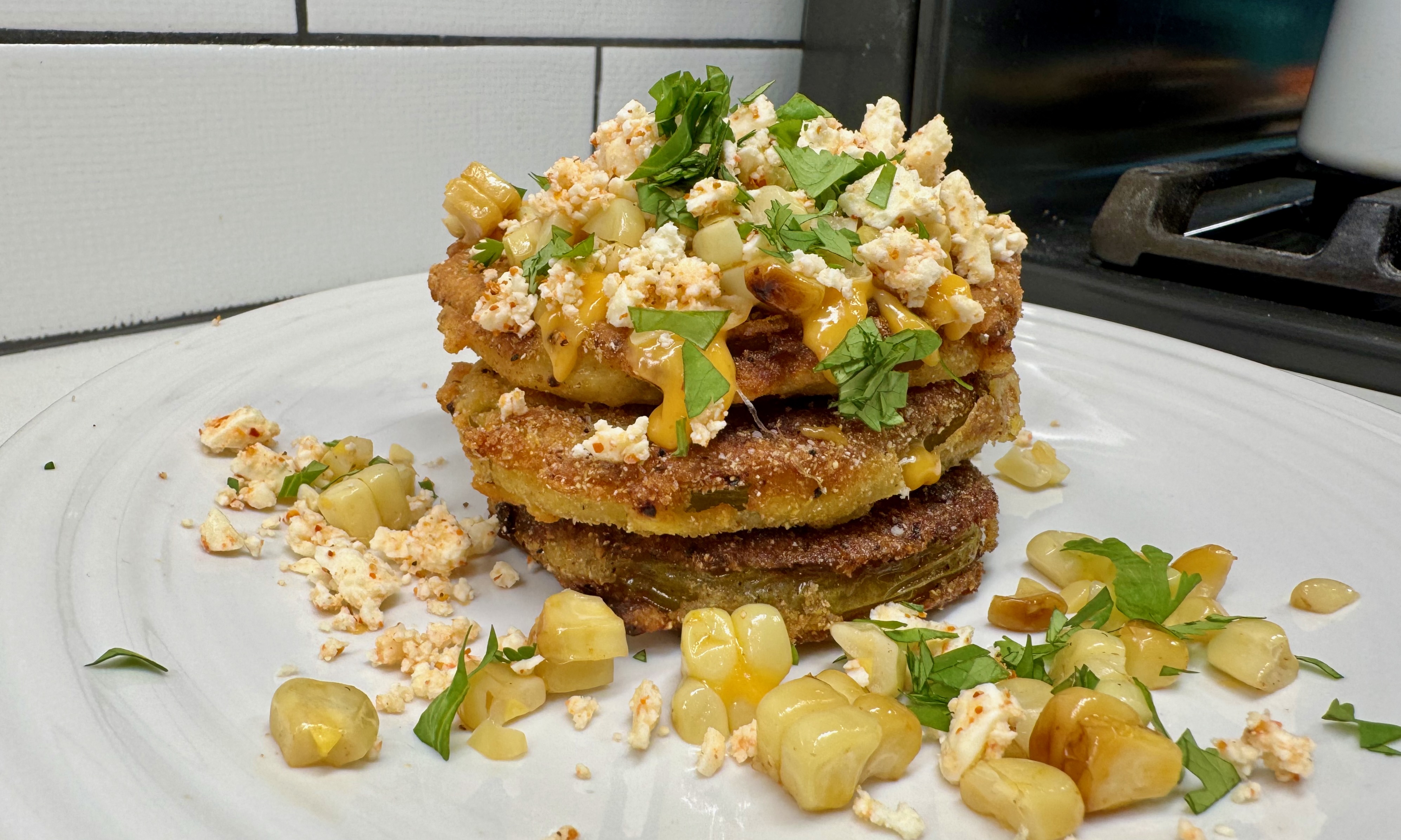 Fried Green Tomatoes (with Mexican Street Corn)