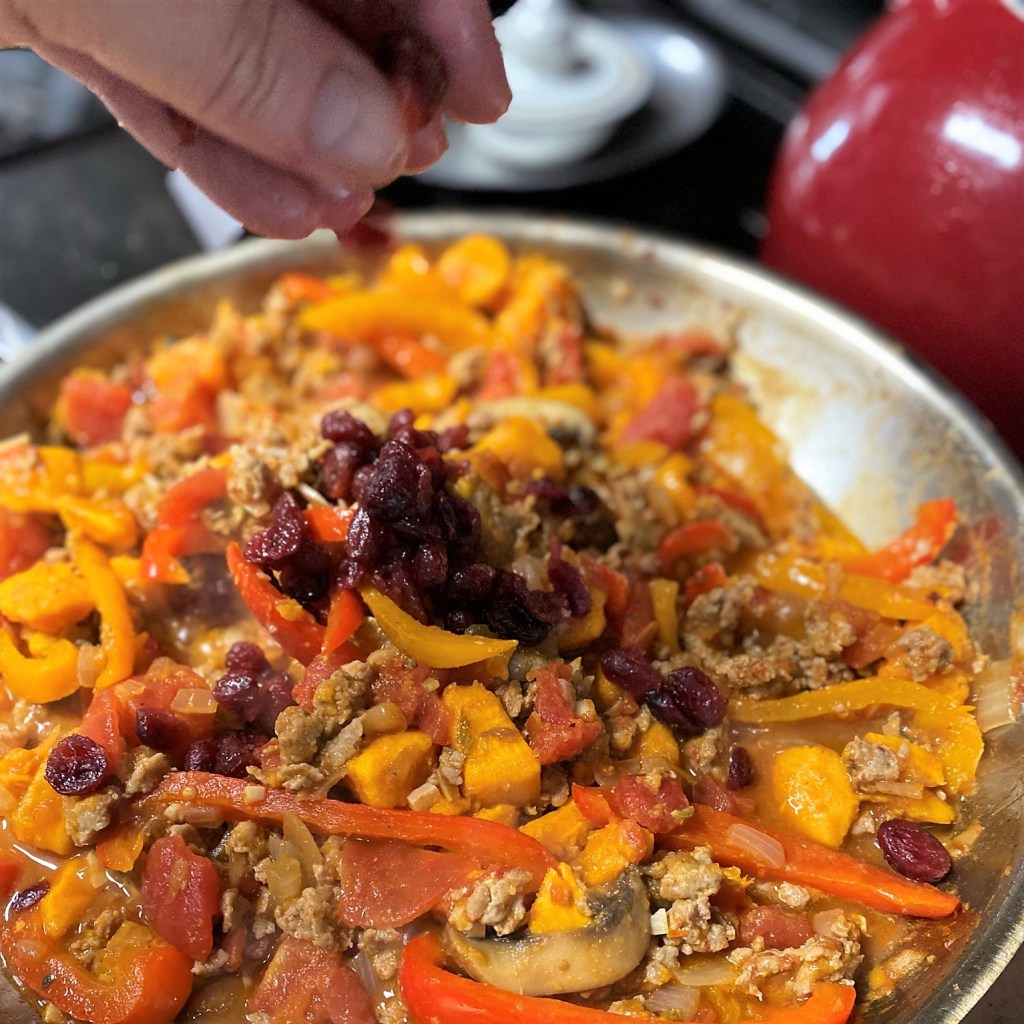 - Bison can be substituted with ground beef, ground turkey or other favored protein; chili also works great with different kinds of stewed or smoked meats cut into small chunks.
