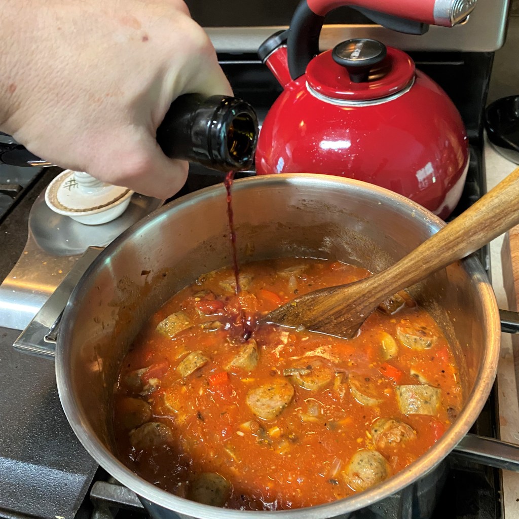 - I like to use a dark beer; for this batch it was Guinness Foreign Extra Stout, which Terrie thought was too bold but it was the only bottle of dark beer in the “downstairs” fridge.