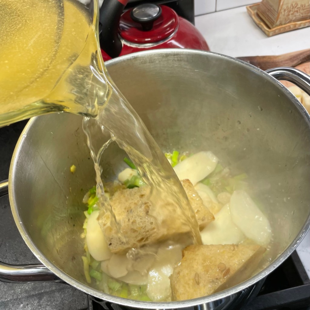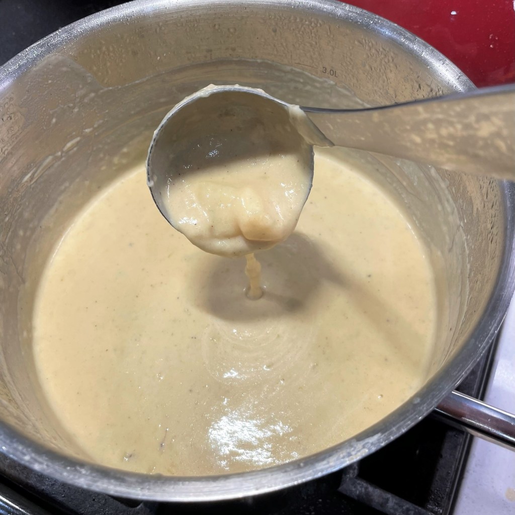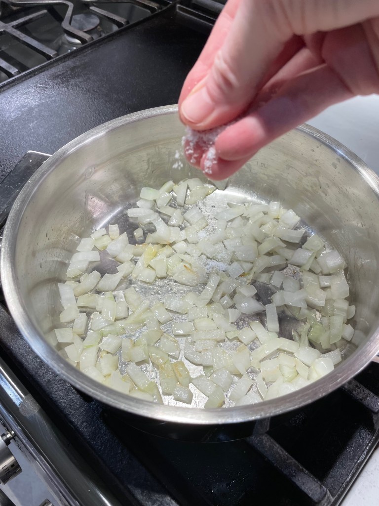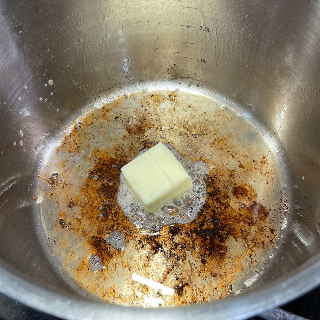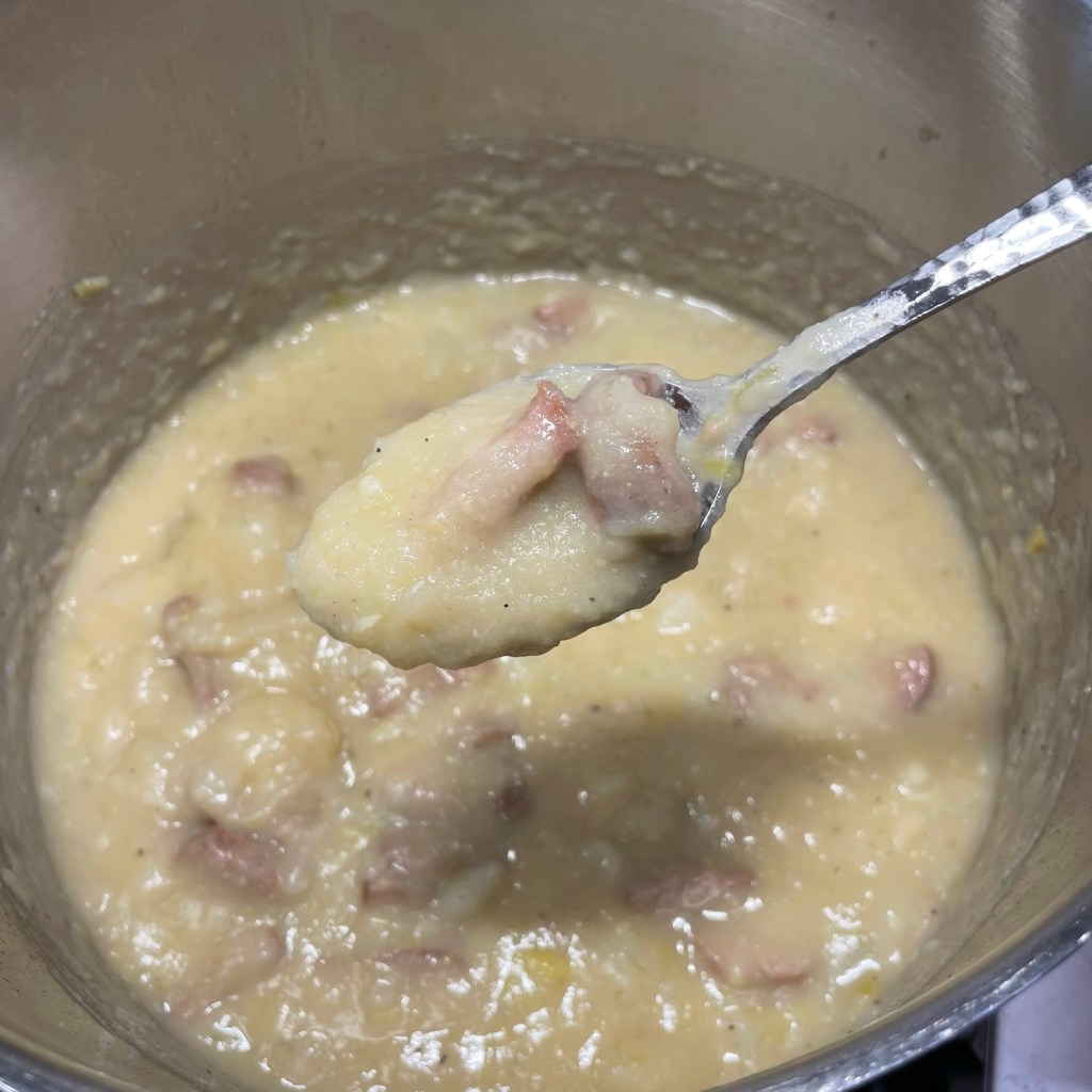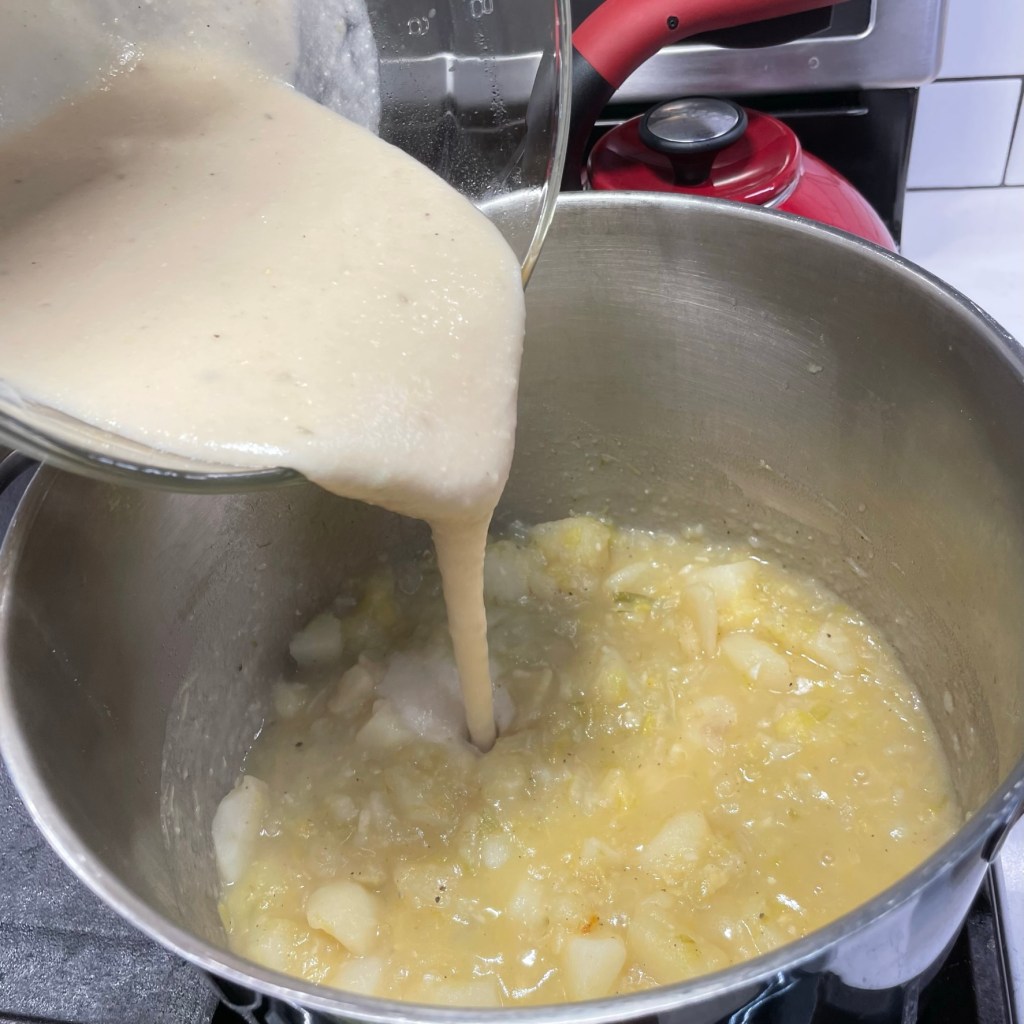 I didn’t have carrots on hand, but butternut squash stood in nicely. A jalapeño in the produce drawer promised to add a subtle layer of heat, which Les would never argue against. I sautéed those in the fat rendered from the bacon. To add a little extra body to the chowder, I cooked in a bit of flour just before deglazing the pot with white vermouth (because I never have wine on hand anymore).