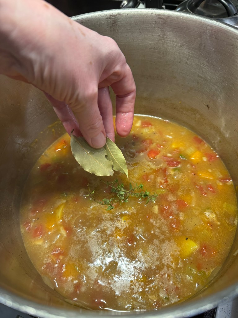 - 2 dried bay leaves and 3 sprigs fresh thyme
