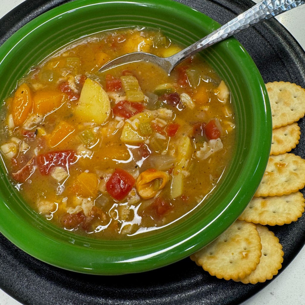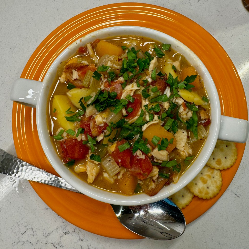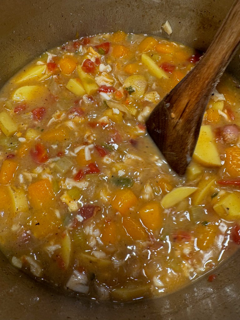 As I pondered how to find a happy medium between the lighter, tomato brothy chowder I craved and the creamy but bland version my husband favored, I got to thinking maybe it would fun to create something altogether new— a chowder with more texture and maybe some autumn ingredients. That’s when my search for “autumn clam chowder” turned up a terrific inspiration recipe on the Southern Living website— they called it Hatteras Chowder.