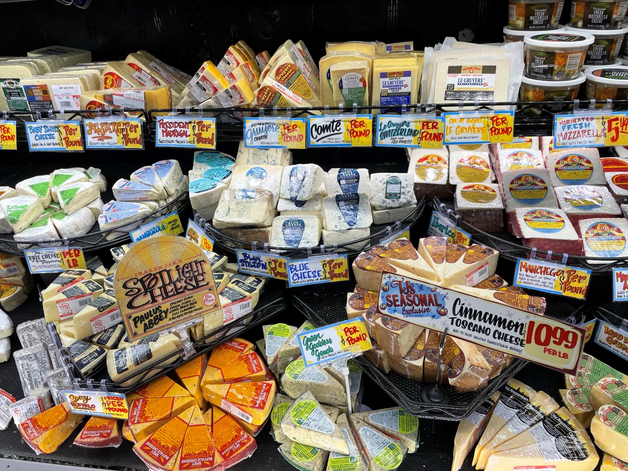 Need some cheese to go with that wine? Scoot on down the row to the specialty cheese case where you’ll find a few standards, such as the Unexpected Cheddar that is immensely popular at our house, with its sharp, salty flavor that hints at Parmesan. And depending on your timing, you’re guaranteed to find a nice “seasonal” cheese, like the cinnamon-dusted Toscana that I picked up on my recent visit.