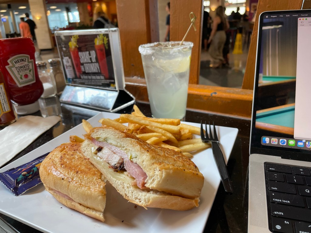Day drinking is not something I ordinarily do, but last Thursday was not an ordinary day. It was a busy travel day for me, and with two hours to kill at Charlotte-Douglas International Airport, I decided that a rum-based margarita would be a good accompaniment to my BBQ pork belly Cubano sandwich. Yep, at 10:30 in the morning.