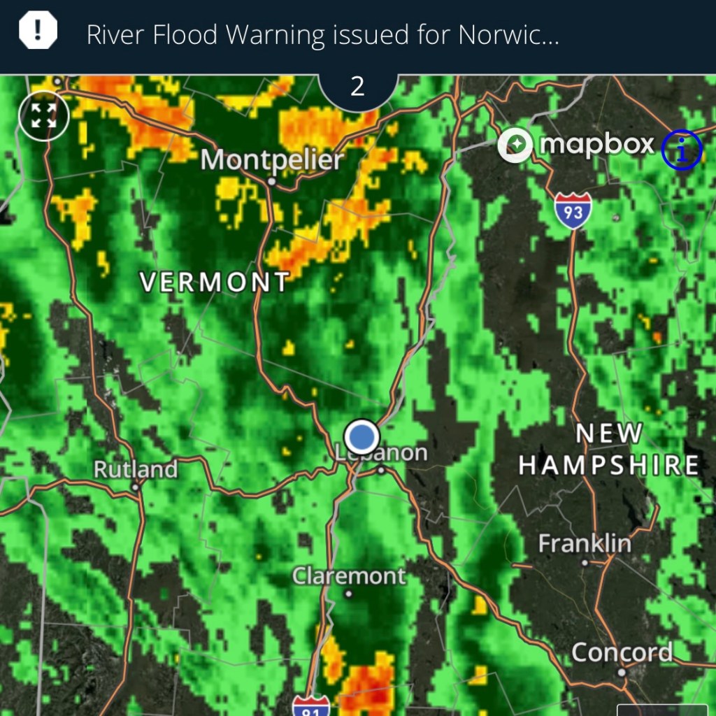 The weekend went too fast (don’t they always?) and when I hugged Annie—my oldest friend—goodbye, I rented a car and high-tailed it northward to Norwich, Vermont, just barely outrunning the flood of the century.