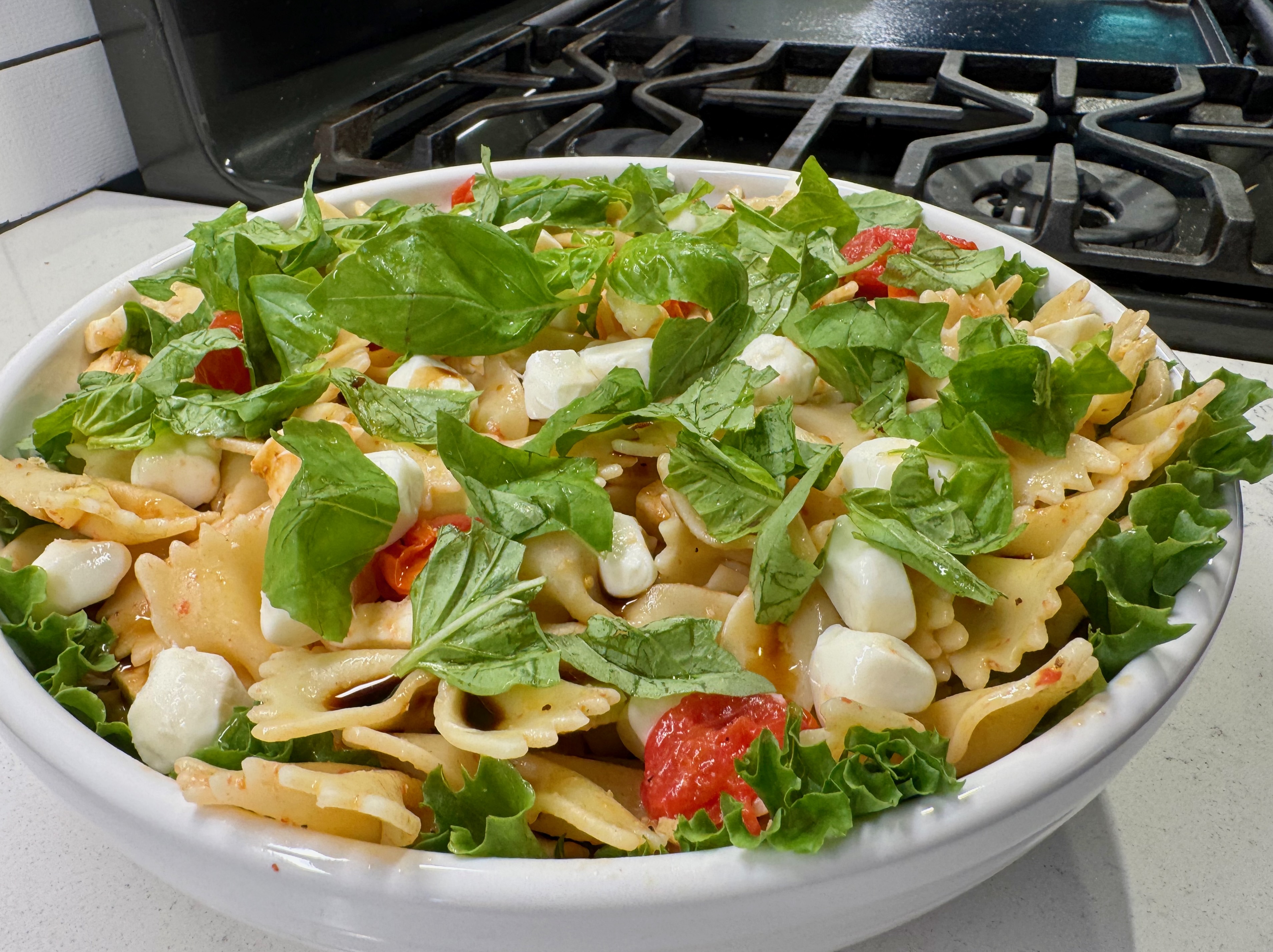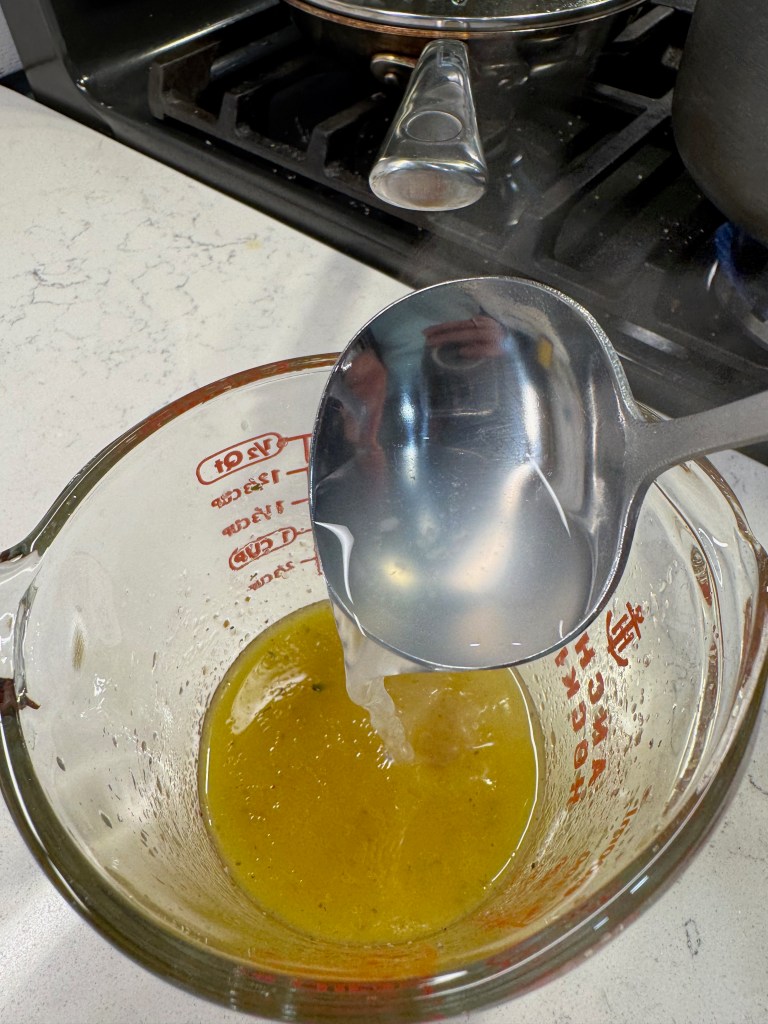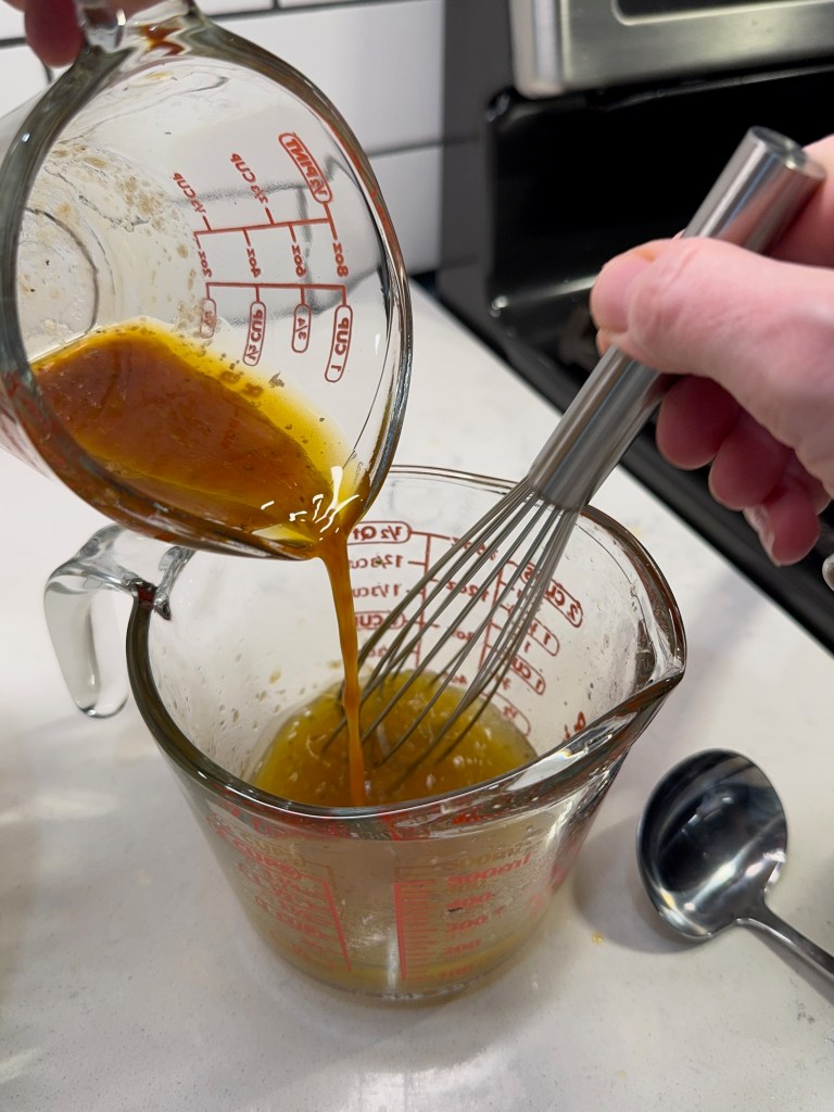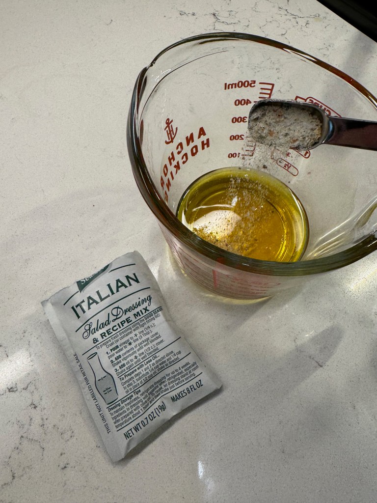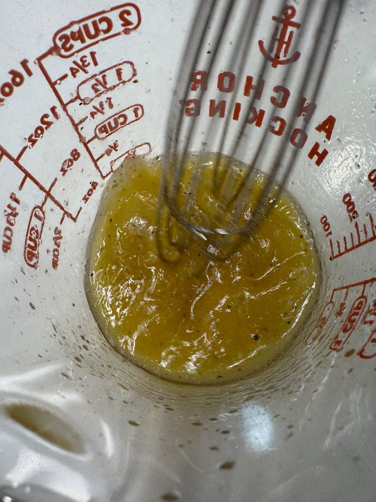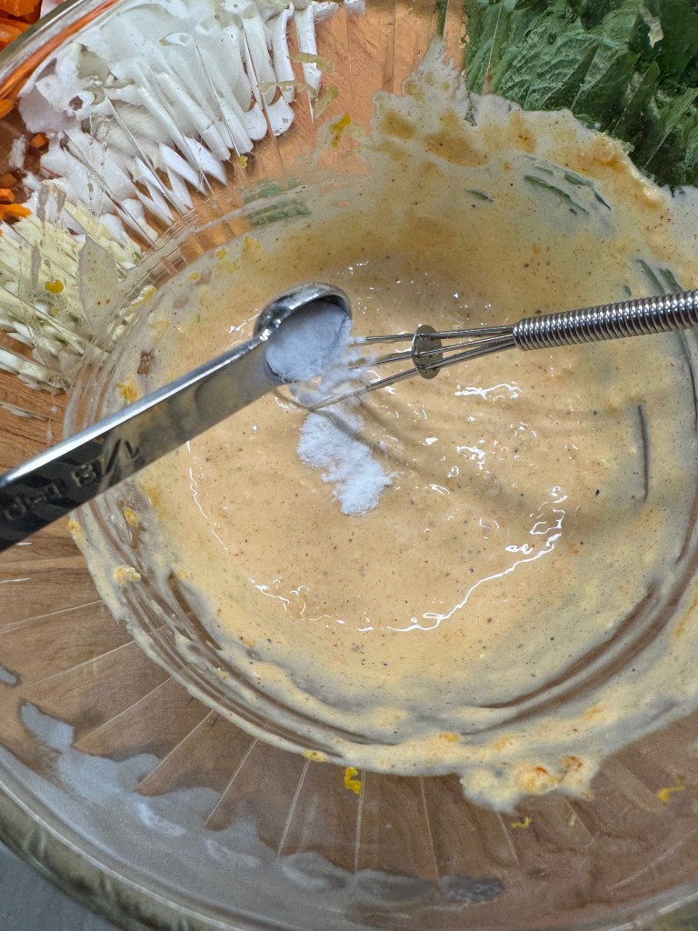I made the dressing early in the day so that the flavors had a chance to meld before dinner. I knew that I wanted a creamy, ranch-style dressing, and I considered making it from scratch before I found a packet mix with simple, clean ingredients. For southwestern flair, I subbed in a spicy mayo along with the buttermilk. It was perfect for this salad, and saved a bunch of time.