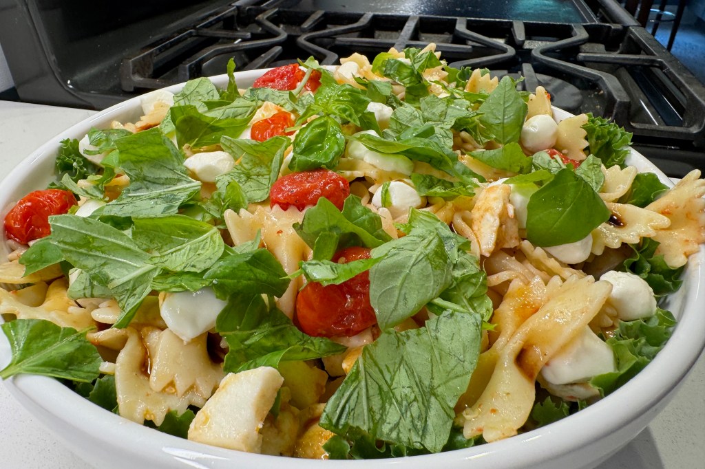 The street corn inspiration is evident here, but I wanted more pop and color, so I also prepped a handful of baby tomatoes, some diced red onion and cubed avocado. The only thing left to do was build this salad!