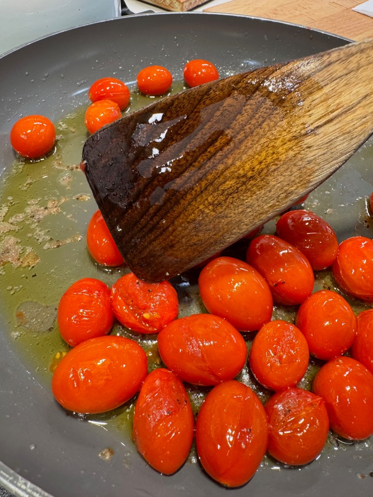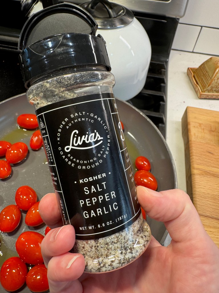 - Handful of cherry or grape tomatoes, quartered and seasoned with salt and pepper