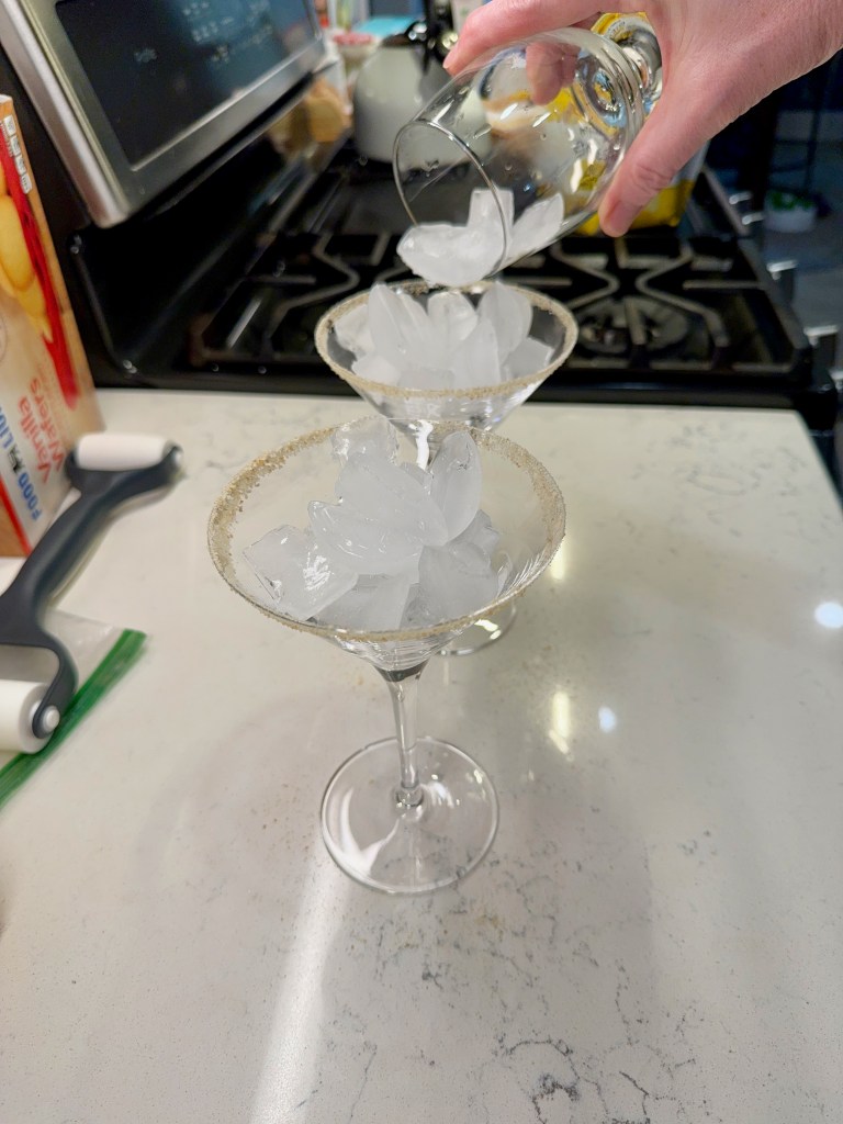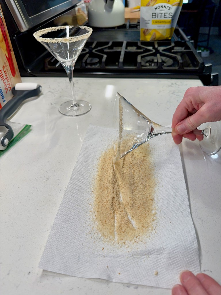 Wanna go for bonus garnish points? Balance a strip of cinnamon-dusted baked pastry dough on the edge of the glass, too. If you’re making a pie for the holiday, simply save a few strips of dough, giving them a sprinkle of cinnamon sugar before you bake to golden crispy goodness. These are best fresh; if you don’t have time, the apple and cinnamon stick will be impressive enough!