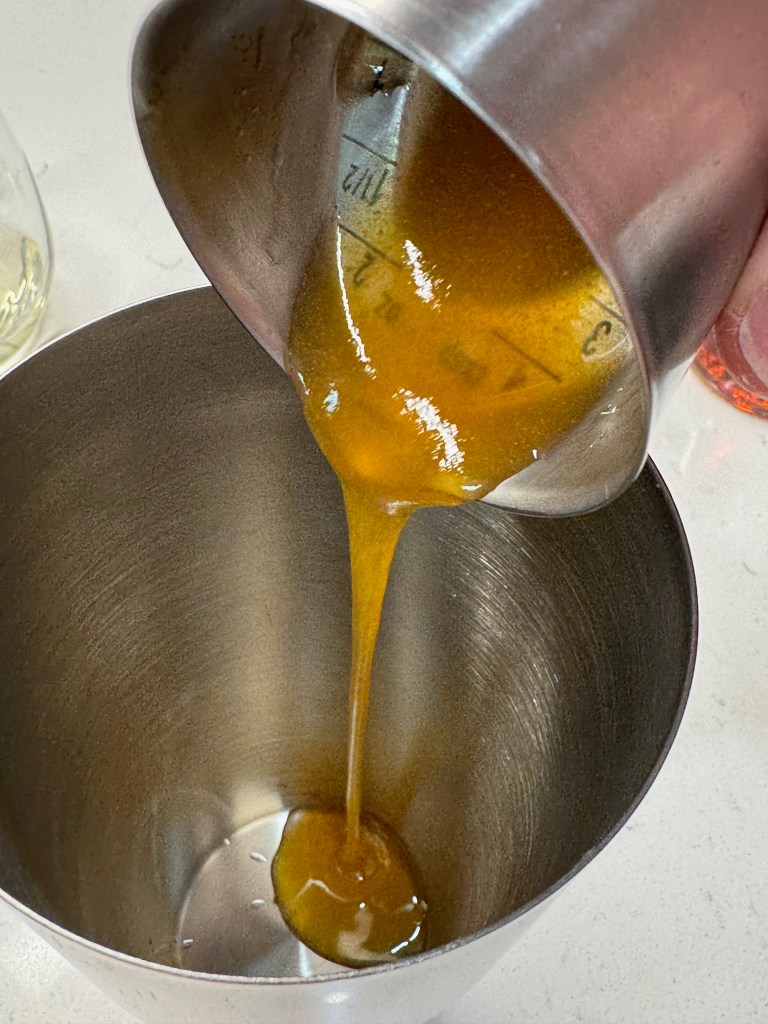 I waffled a bit on whether to use salted or unsalted butter for the cocktail, and when I tasted the outcome of my efforts using unsalted butter, I knew instantly that it was the wrong choice. Salt does the same thing for a cocktail as it does for a dish, so I remedied this with a pinch of salt in the finished butter— no harm, no foul. Pour the bourbon into the jar with the cooled browned butter and give the jar a few gentle shakes. Let the mixture settle and separate, and then refrigerate overnight or up to two days.