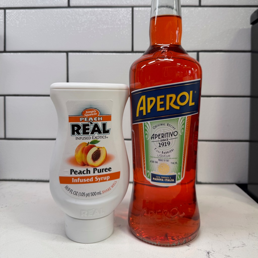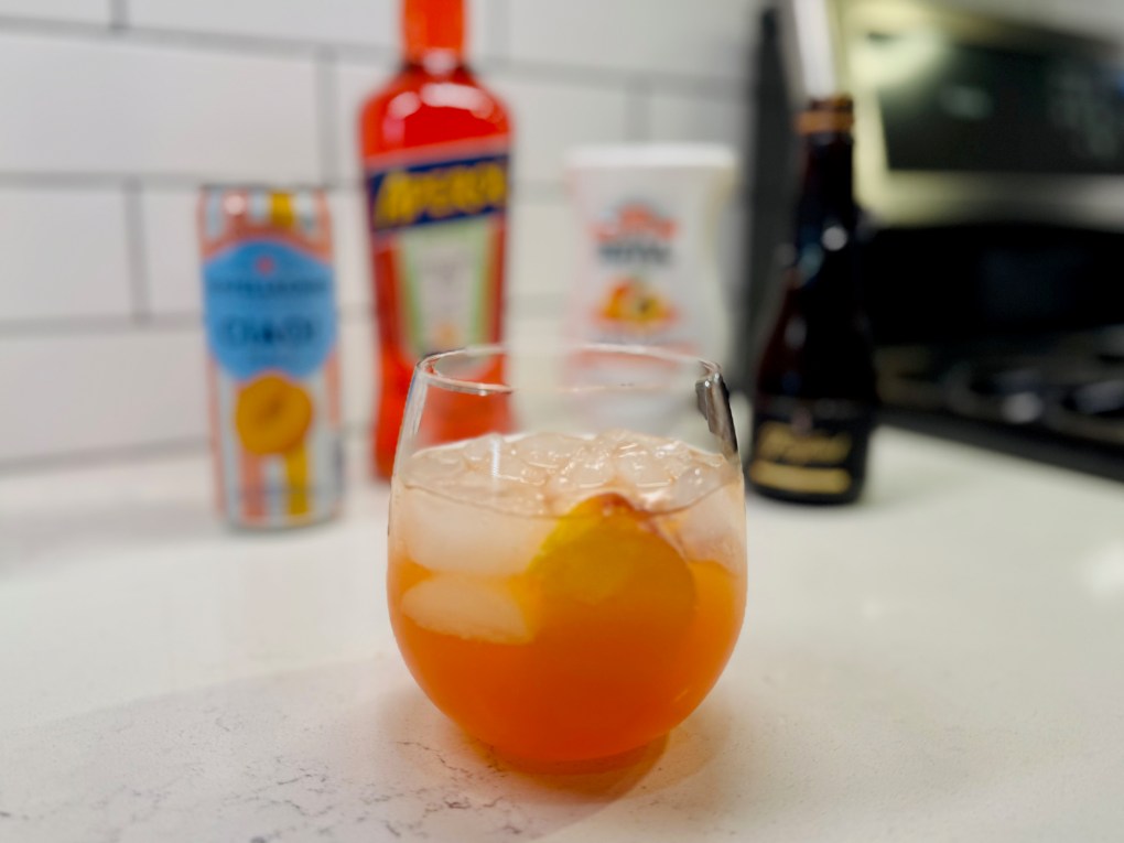 For best results, purchase a fresh apple cider from the produce cold case, rather than a bottled version off the shelf. If you can get one from a local supplier, that’s even better! Heat the cider with a spoonful of brown sugar, the peel of a lemon and a couple of cinnamon sticks. Reducing the cider is necessary so that you get enough apple flavor without adding too much cider and over-diluting the drink. Strain out the solids, and bottle it up! This will keep in the fridge for about three weeks.