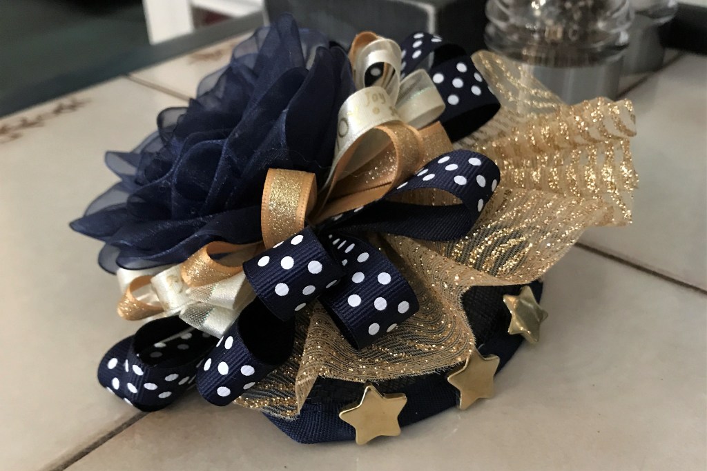 Another friend was looking for a special way to honor her mom’s milestone birthday, so I made a custom fascinator with gold star buttons, which had special meaning for her.