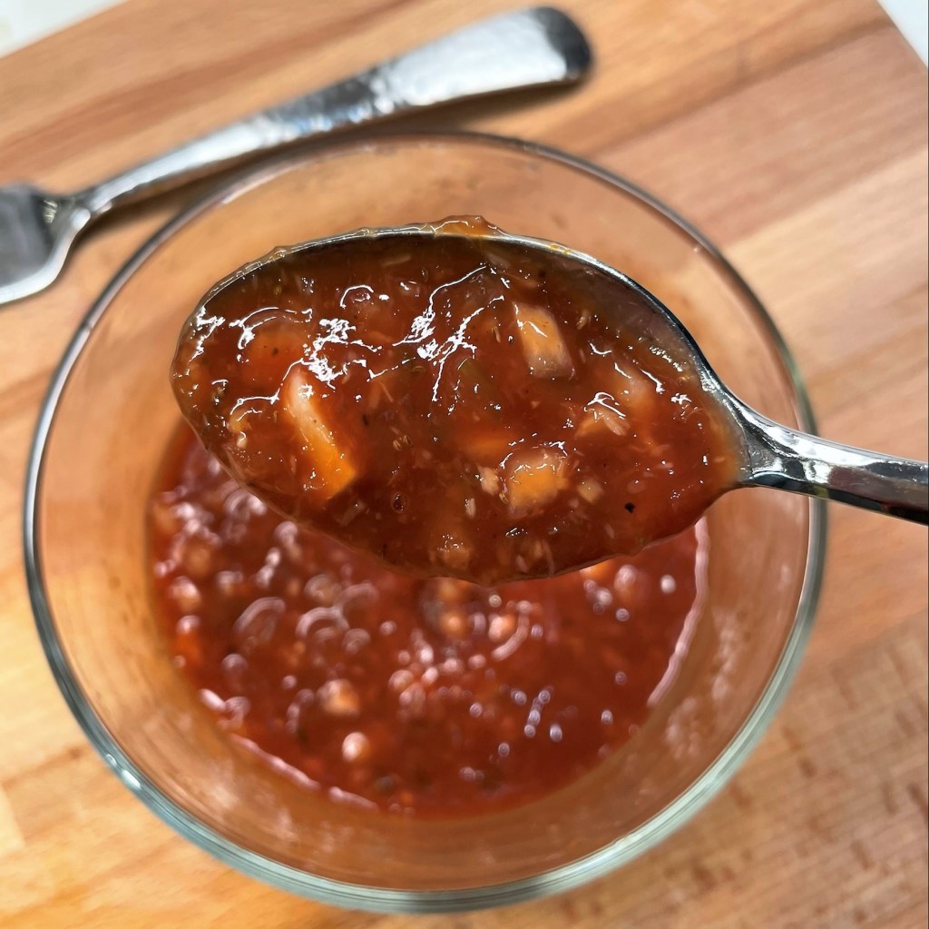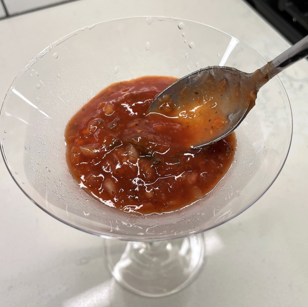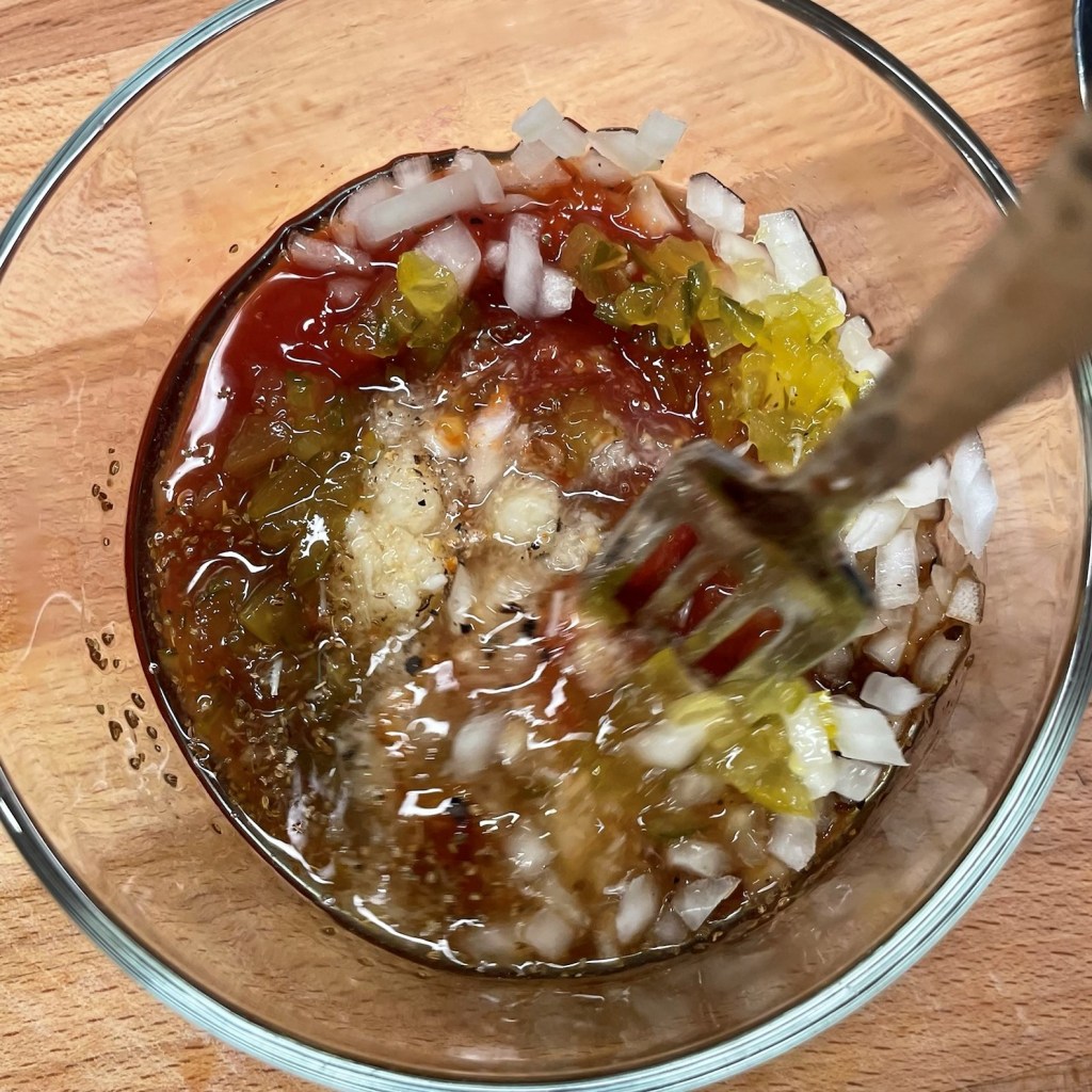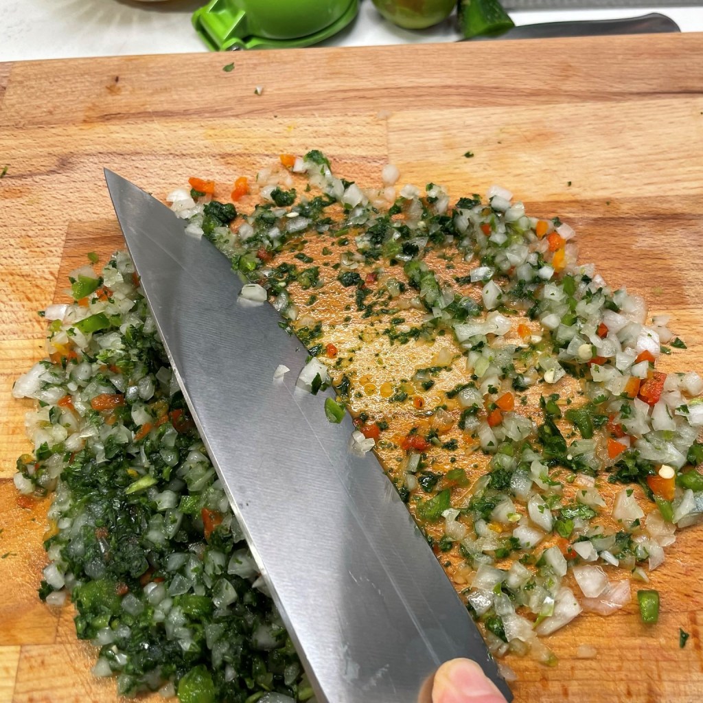 For this final step, scrape down the sides of your processor bowl and then run it continuously until the hummus is a silky consistency. If you find the mixture to be too stiff, stream in a little more of the chickpea liquid and process again. Keep in mind that the hummus will be thicker once it’s chilled. Drizzle in olive oil while the machine is running. When it is smooth to your liking, give it one more taste test and adjust seasoning as needed. For mine, I decided to add a few shakes of onion powder to emphasize the savory flavor of the harissa, but I’ll leave that up to you.