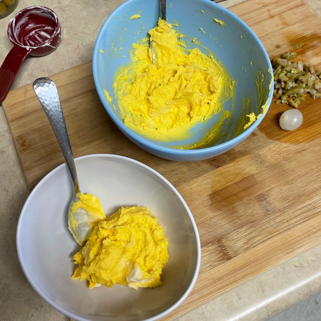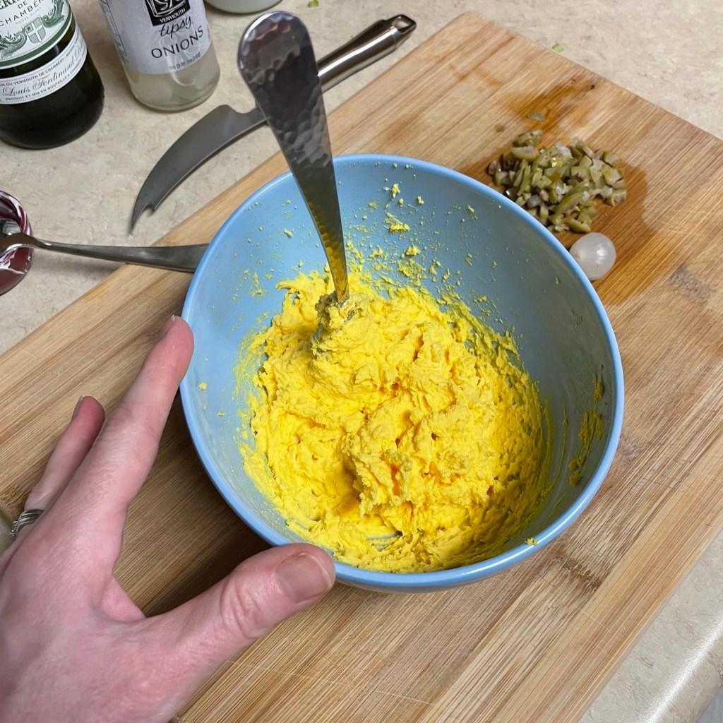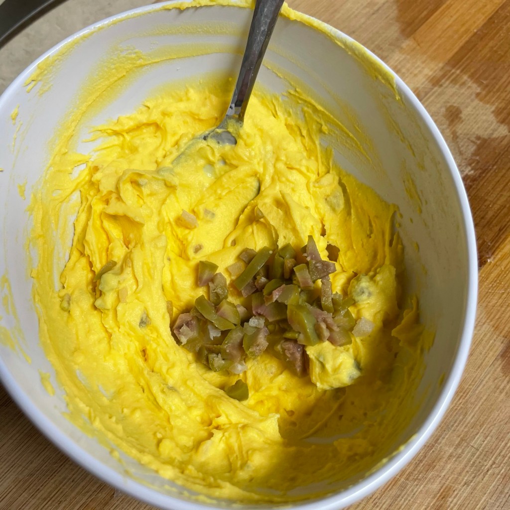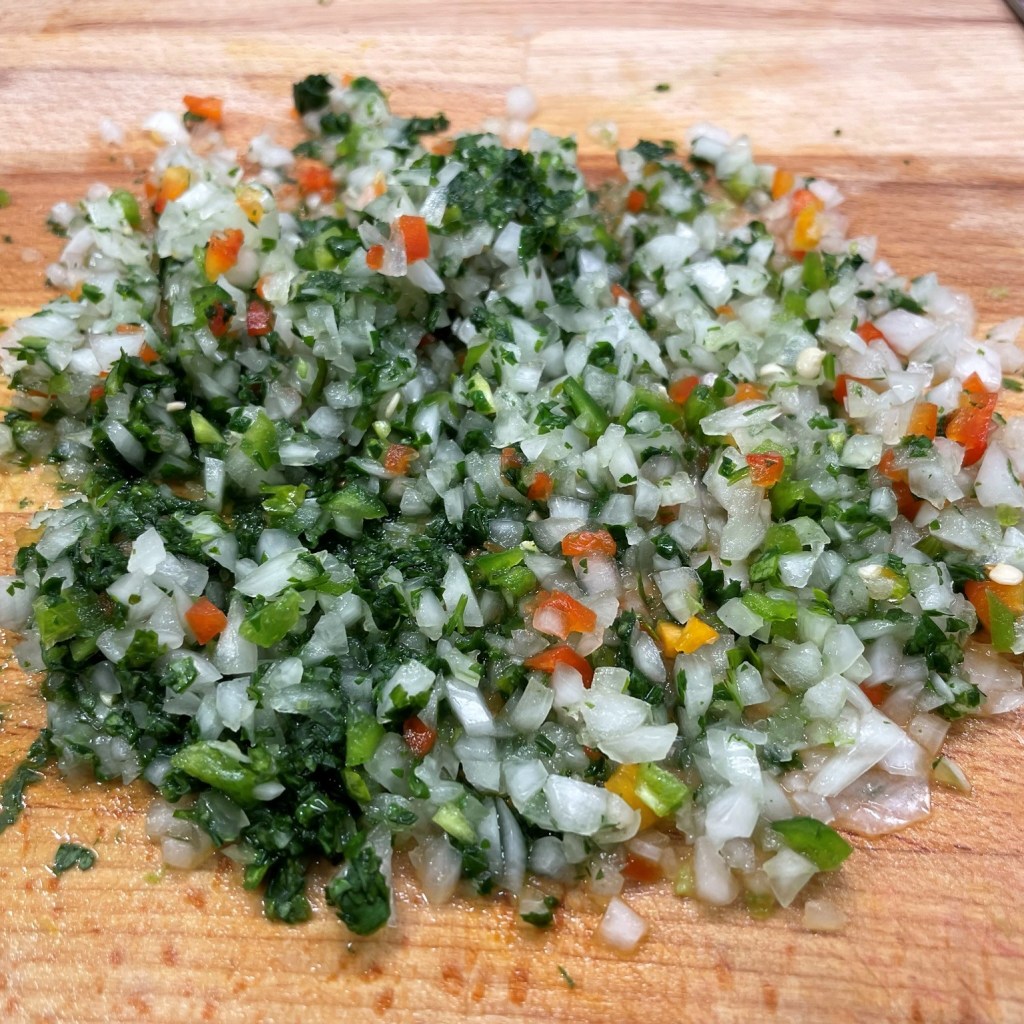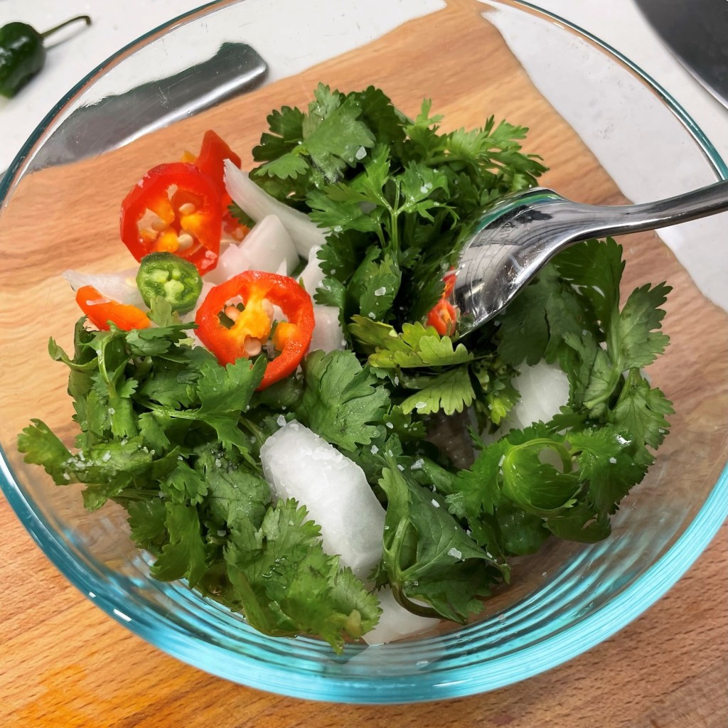 For this final step, scrape down the sides of your processor bowl and then run it continuously until the hummus is a silky consistency. If you find the mixture to be too stiff, stream in a little more of the chickpea liquid and process again. Keep in mind that the hummus will be thicker once it’s chilled. Drizzle in olive oil while the machine is running. When it is smooth to your liking, give it one more taste test and adjust seasoning as needed. For mine, I decided to add a few shakes of onion powder to emphasize the savory flavor of the harissa, but I’ll leave that up to you.
