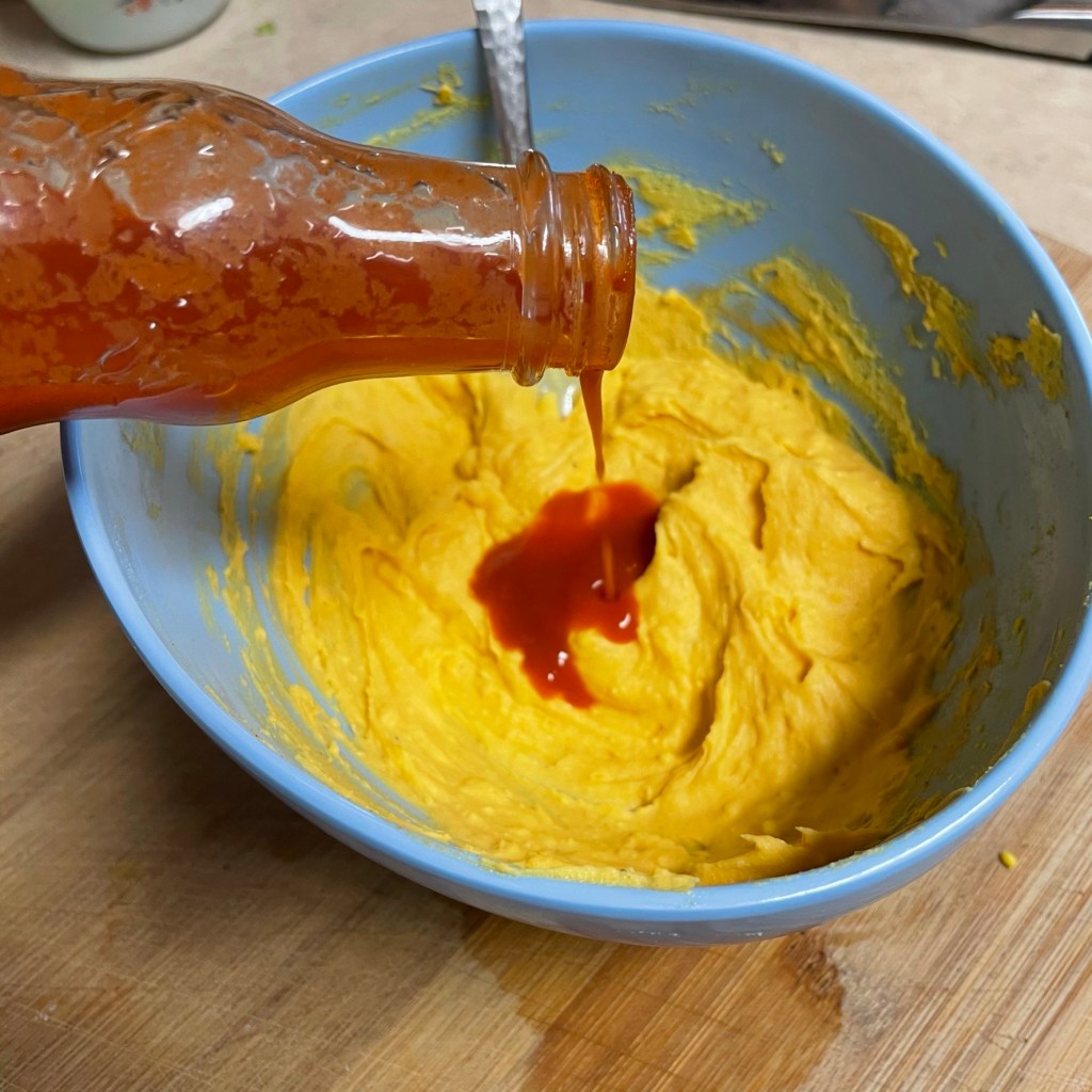 This brand of harissa is labeled “spicy,” but don’t you believe it. I barely tasted any heat at all and my husband said the same. If you are sensitive to capsaicin heat, be sure you evaluate the level in your harissa and use your judgment on how much can be added without it sending you to the ER. If your body can’t take capsaicin at all, simply omit it. The sweet potato hummus is delicious without further embellishment.