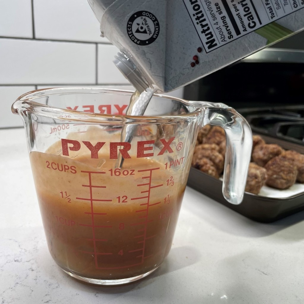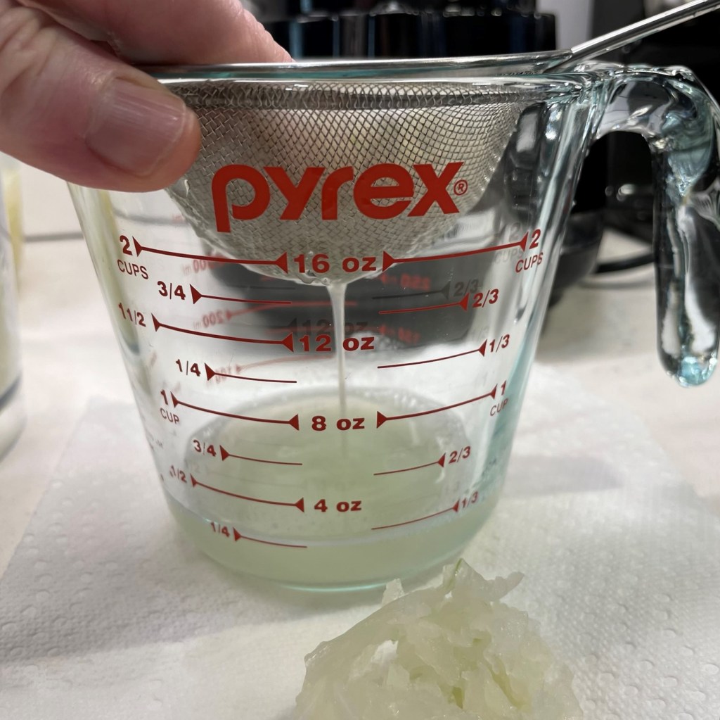 My second tip is simple— heat the garbanzo beans in their liquid before blending, and add a pinch of baking soda to soften up the skins. Dump the entire can (liquid and all) into a small saucepan over medium low heat and let them go until you see small bubbles and steam coming off the pan. Strain the chickpeas through a mesh strainer, but keep the liquid because you’ll need some of it for blending.