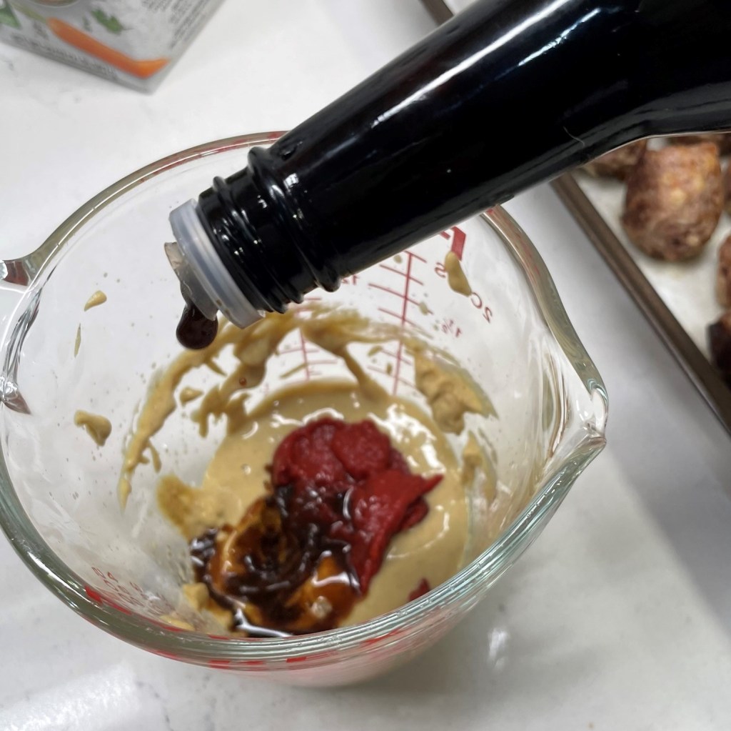 - Add beans, plus about 1/4 cup of the liquid, to the large bowl of a food processor or blender (with vent cover removed). Add sweet potato, tahini and salt to the processor and pulse several times until the mixture is blended but still slightly coarse. Use a spatula to scrape down the sides of the processor bowl.