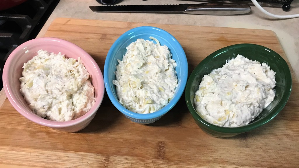 Of all the recipes I stashed away in my mind during the time I spent working in a catering kitchen, the hot artichoke dip takes the gold as my most durable. During my two years as a kitchen assistant, I probably made this dip more than 100 times. It was a favorite among clients, and for good reason. It’s easy to make ahead, easy to serve in large quantity and an undeniable crowd pleaser. It also happens to be extremely adaptable to other ingredients, as we learned with the Kentucky Hot Brown Dip a few weeks ago. By keeping the base recipe the same, I’m able to adjust the other ingredients to create whatever impression I wish, and I encourage you to do the same with ingredients that sound good to you.