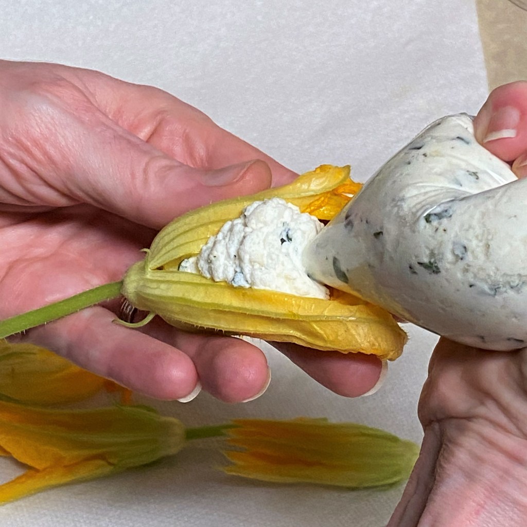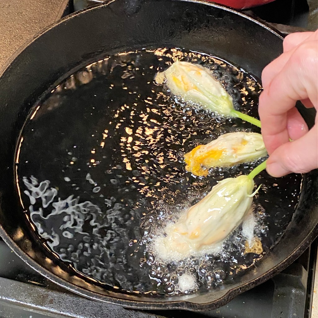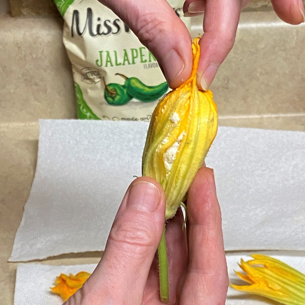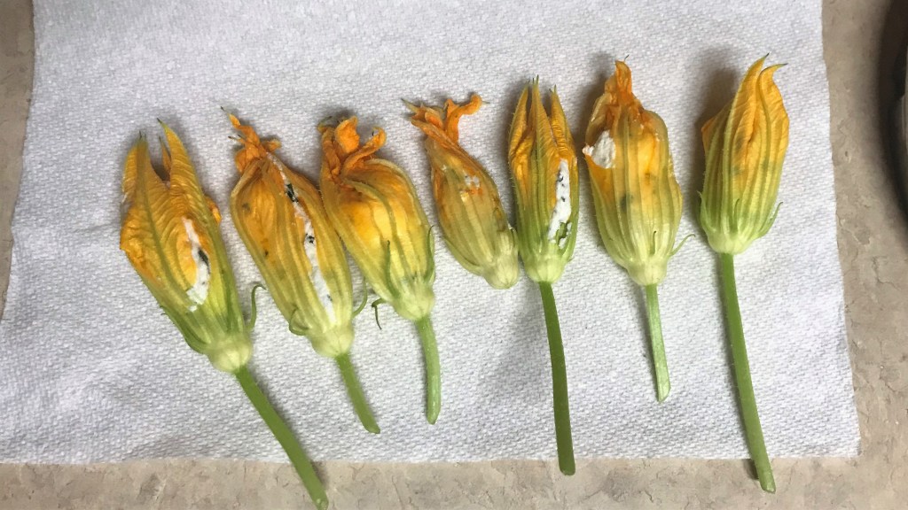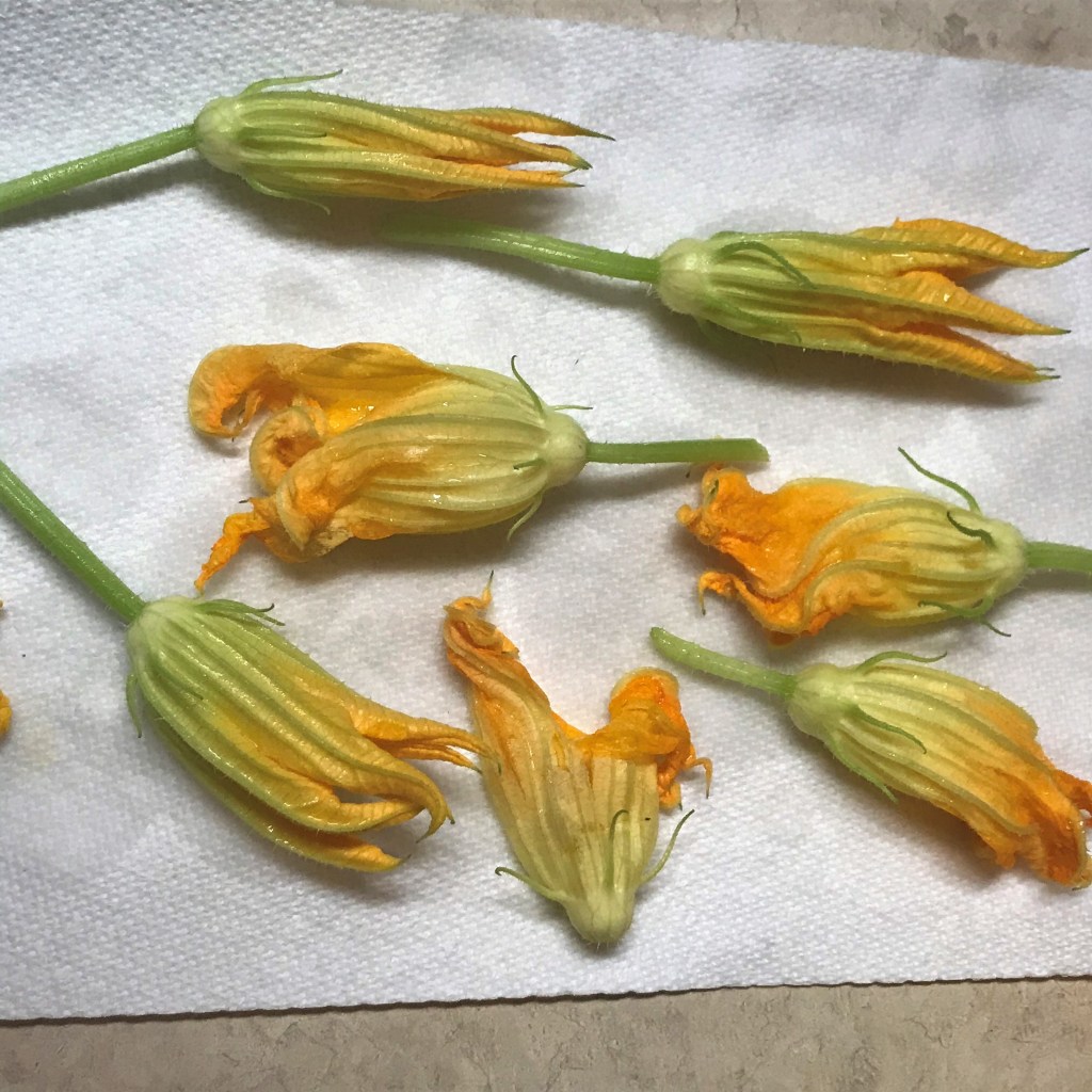 A couple of my blossoms look sad and limp, but I think they’ll be okay stuffed and flash-fried.