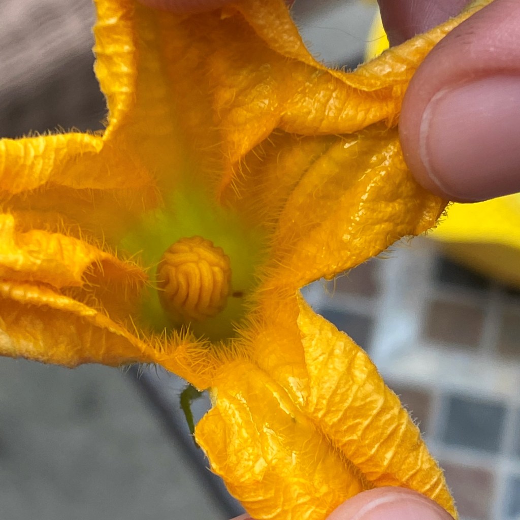 The male flower has this, um, thing inside that isn’t very appetizing. I need to reach in there and pinch to remove it.