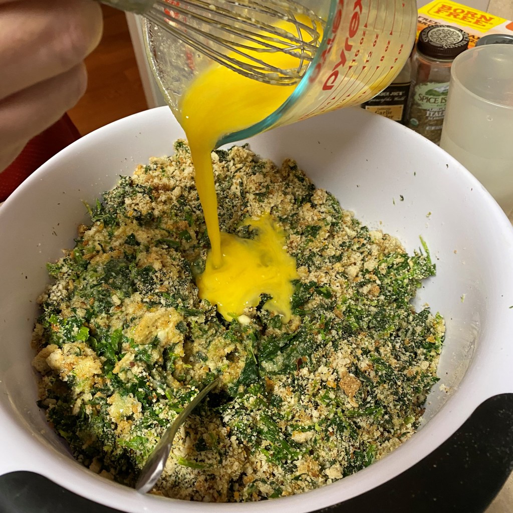 Carefully reach inside the squash blossoms and remove the stamen, which is a bulbous yellow thing inside. It’s the, um—how shall I say it?—male part of the blossom. Don’t worry if the petals tear a little bit. And may I suggest that you consider doing this step outside at the garden. I made a first-timer’s mistake of doing this at the kitchen sink and scared the bejeezus out of a pollinator bee inside a blossom. Sadly, I had to smash it in the sink because Les is terribly allergic to bee stings. I felt awful about it, but I went through a lot to find this wonderful man, and it was him or the bee.